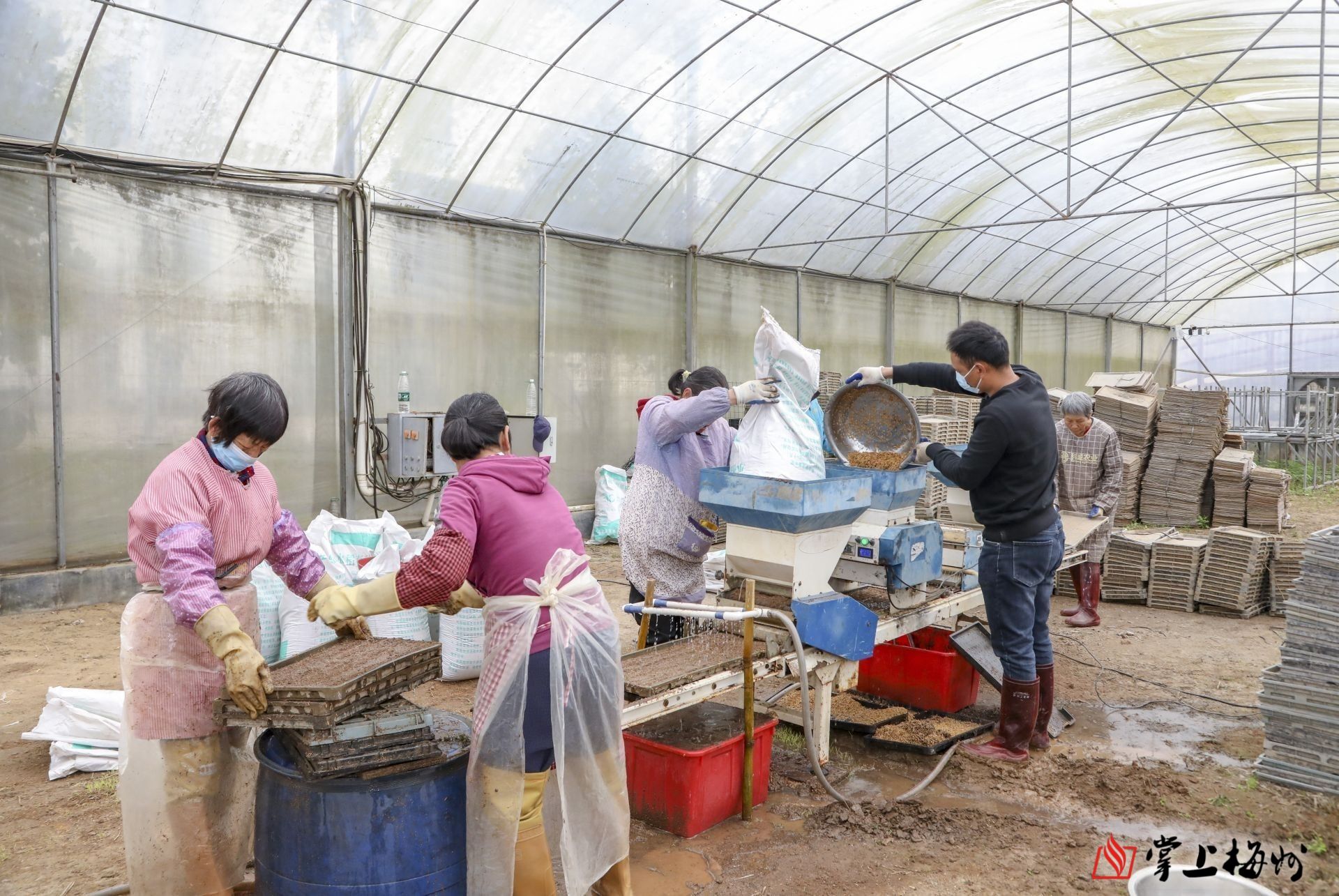 工人们分工协作,制作秧盘。(汪敬淼 摄)