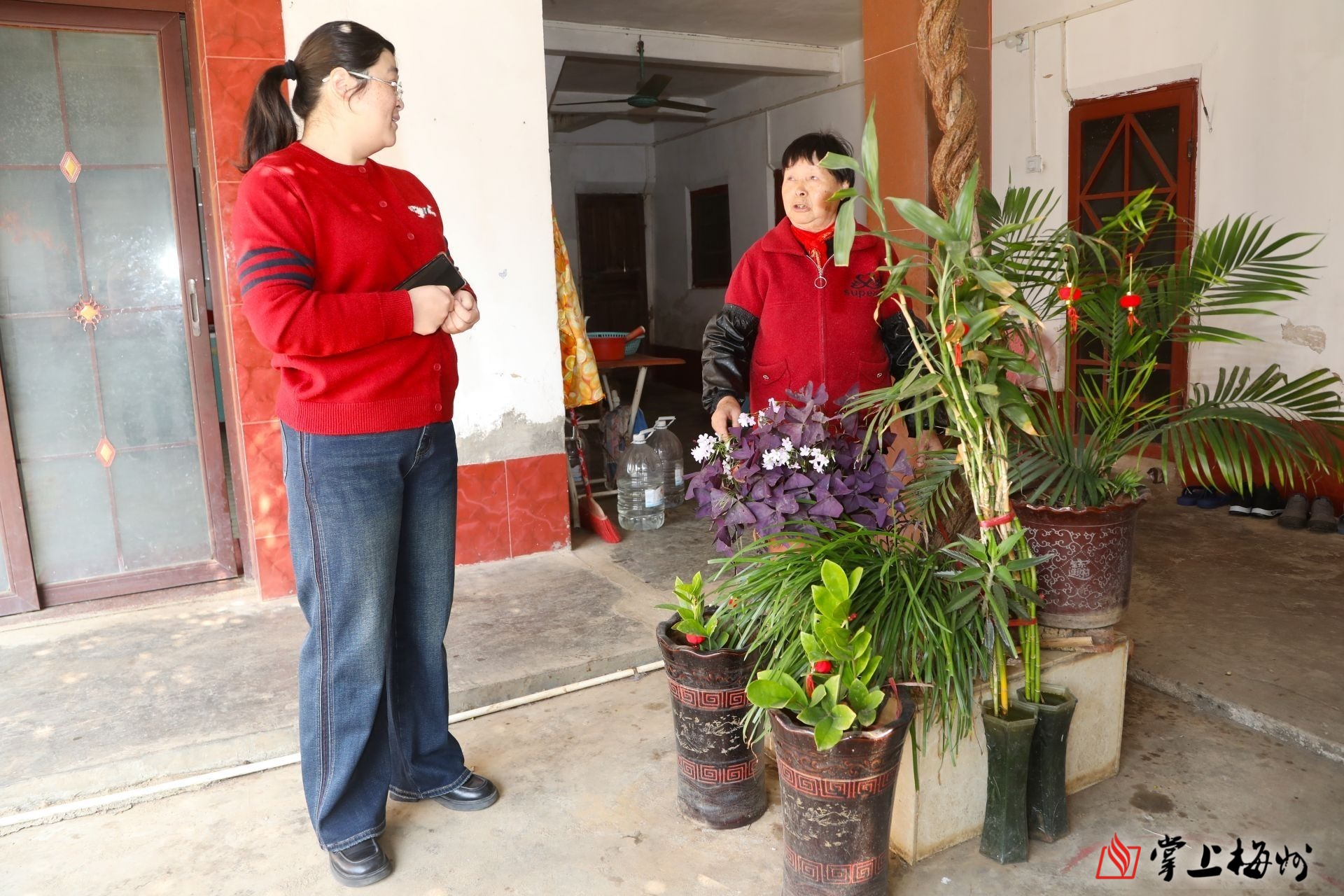“连香姨,今年的鞭炮花开得很漂亮哦!你们家是村里的美丽庭院……”钟劲梅在村道上走着,看到村民家的花开得漂亮,忍不住进去“唠”两句。