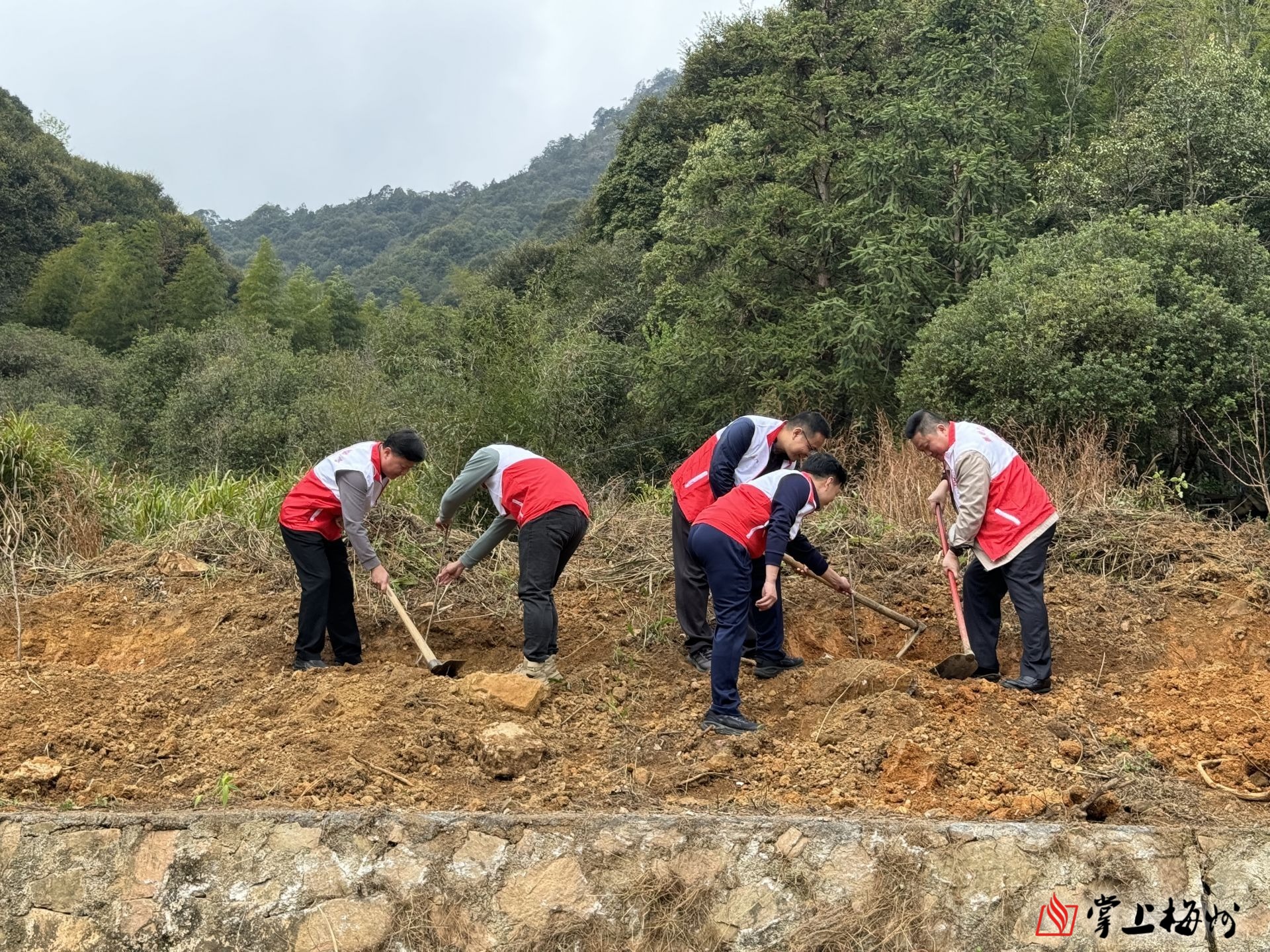 掌上梅州讯 春风催新绿,植树正当时。为积极响应绿美蕉岭生态建设的行动号召,坚持“五绿”并举与“百千万工程”同步落实,3月11日,蕉岭县工商联(总商会)联合县委统战部、县社工部等单位到三圳镇蓝坊肚战斗纪念园开展以“绿美蕉岭‘蕉阳添绿’”为主题的植树活动,用实际行动为蕉岭大地增添一抹新绿。县委统战部代表、县社工部干部职工、县工商联(总商会)干部职工、县新阶联代表、广东省蕉岭商会代表、深圳市蕉岭商会代表、市女企协蕉岭分会代表、县心连心义工协会代表、三圳镇干部代表、东岭村干部约40人参加了植树活动。