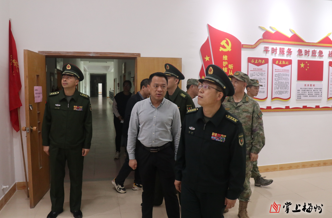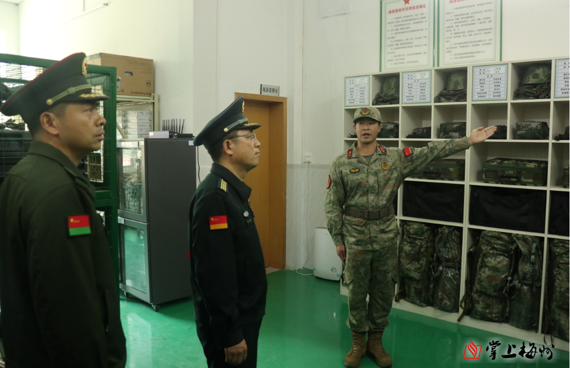 掌上梅州讯 4月10日上午,梅州军分区领导起奎率队到蕉岭县人武部检查调研,梅州军分区战备建设处刘强,县委常委、县人武部领导王晓峰,县人武部领导杨润世陪同检查。
