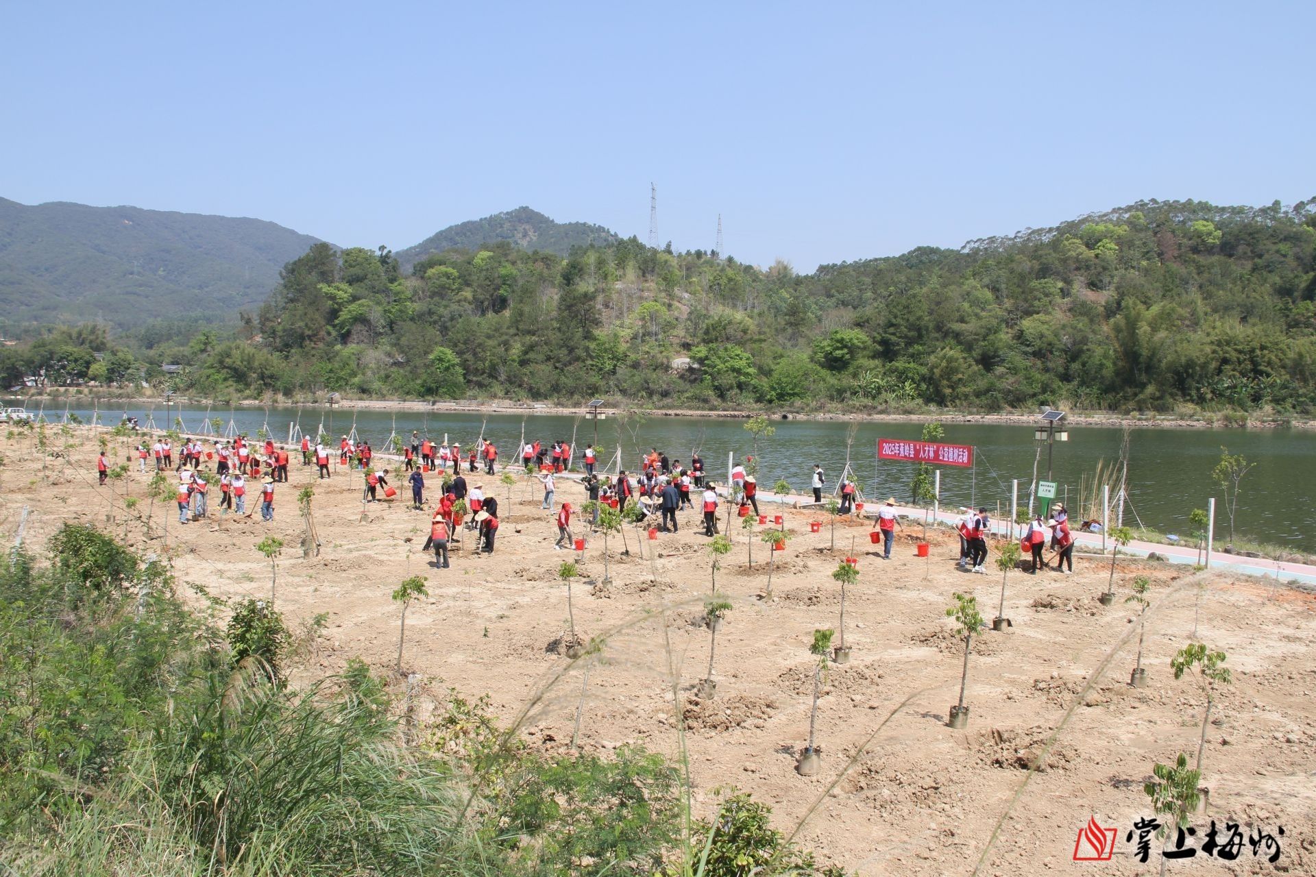蕉岭县在长潭镇白马村万里碧道“人才林”开展公益植树活动。