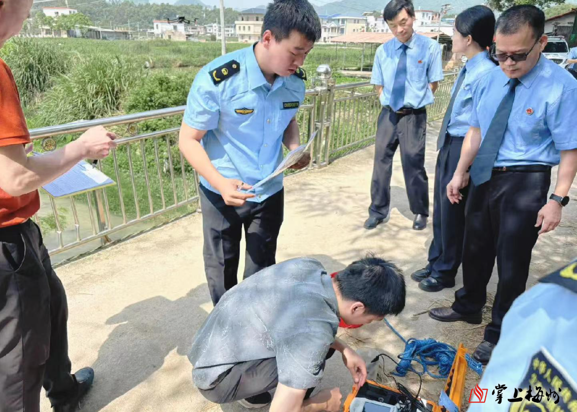此次联合巡河行动采取“现场巡查+远程指挥”“空中+地面”相结合的立体巡查模式。蕉岭县、武平县巡河人员携带无人机、水体检测等专业设备奔赴巡河现场。随着指挥中心下达抽样检测指令和巡河指令,现场工作人员有条不紊地熟练展开现场取样和现场检测,并操控无人机分别沿河道上下游飞行巡查。指挥中心实时对河道面貌与保洁、河流水质、河岸岸线管理等情况进行远程监控巡查。考虑到汛期到来,降雨频次和强度增加,巡河行动还重点排查了河道行洪障碍物、堤防隐患等防汛薄弱环节。随即,双方就现场检测结果、联合巡河情况进行深入总结和交流。