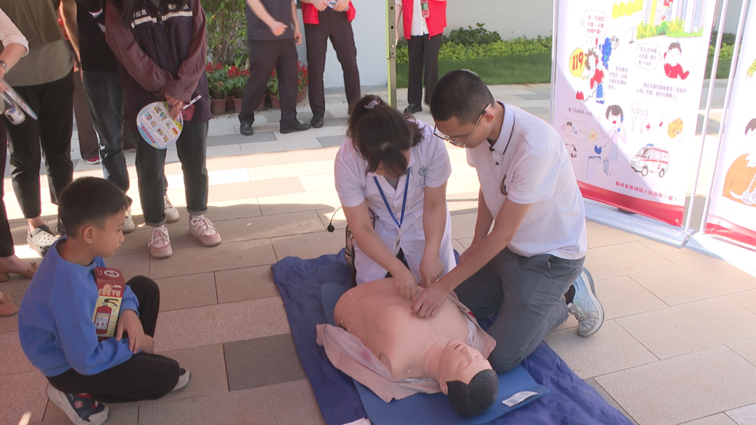 在急救技能教学区,医护人员向现场群众详细讲解了海姆立克急救法、心肺复苏等常见的急救技能要点及操作流程;并进行模拟演示。群众在医护人员的指导下学习了急救站位、手势及发力技巧,通过“手把手”教学,让专业的急救技能变得可学可用,真正提升群众的应急救护能力。