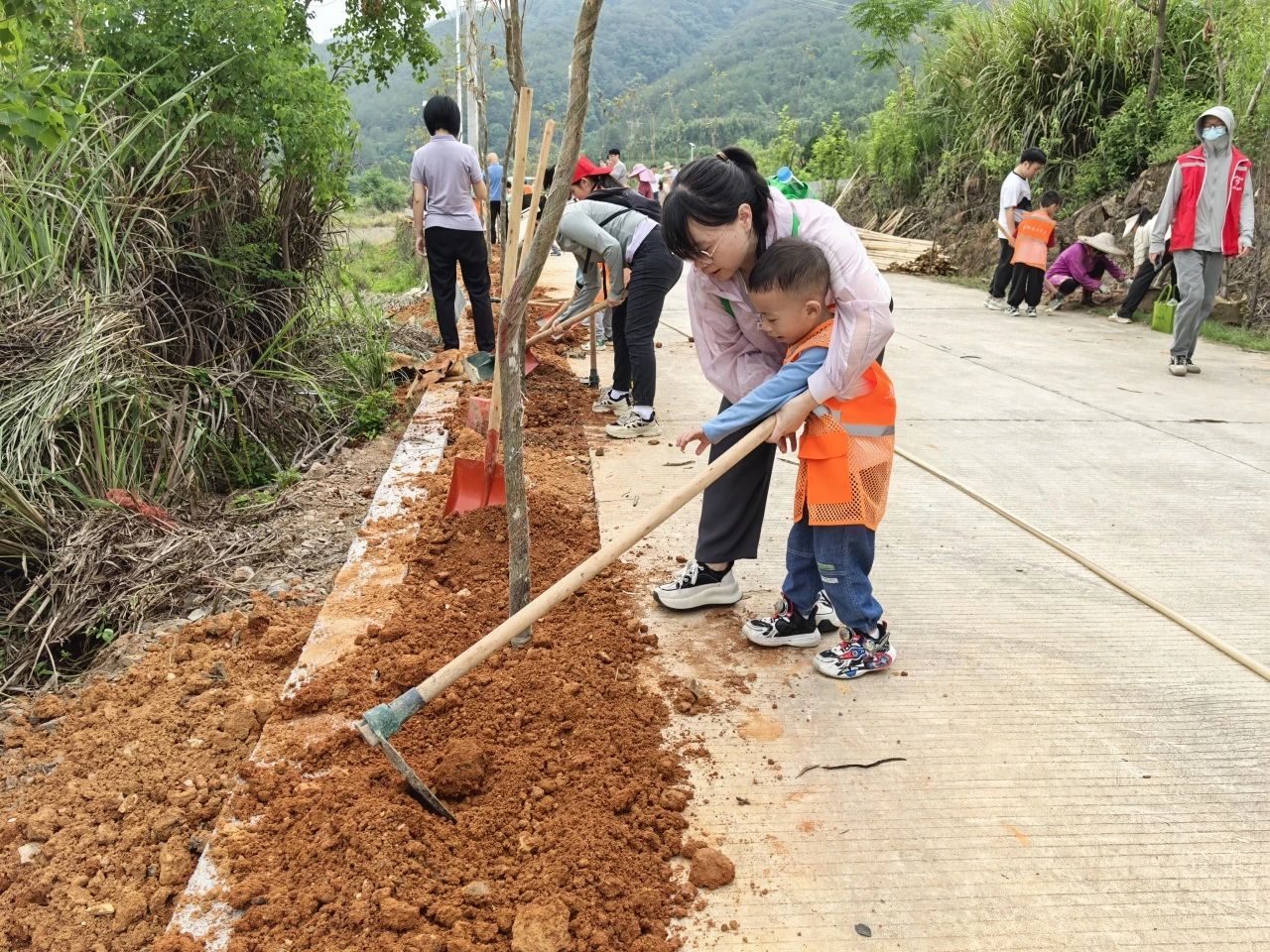 为深入贯彻落实关于实施“百千万工程”、绿美广东生态建设的部署要求,积极倡导“有好事,种棵树”,推动移风易俗、喜事新办的文明新风,5月17日上午,由团市委指导、团县委主办、文福镇团委协办的蕉岭县2025年“结婚种棵树”主题活动浪漫启幕!15个家庭齐聚文福镇长隆村,共同种下235棵代表着乐观与希望的黄花风铃木和幸福与美满的红花檵木。
