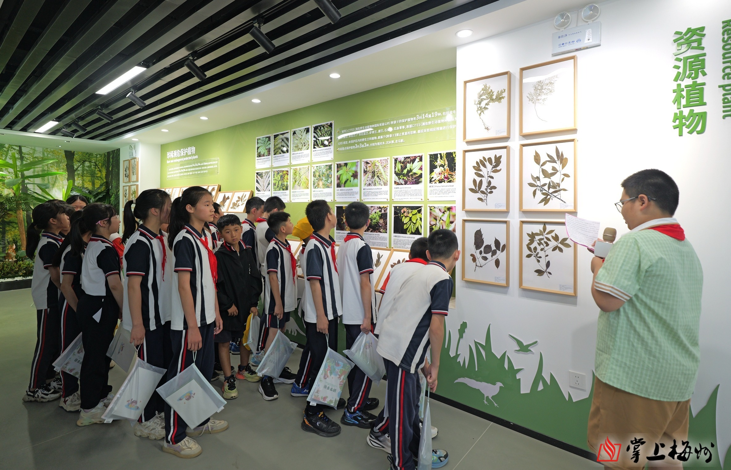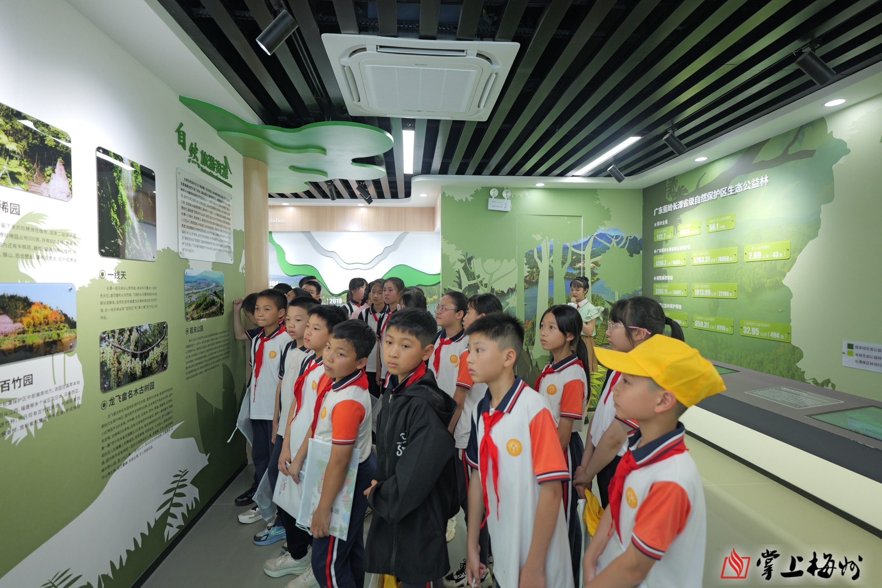 活动现场,10位经过培训的“小小生态讲解员”身着统一服装,以一首原创的《长潭赋》惊艳亮相。琅琅诵读声中,长潭保护区的山水之美、生态之韵、文化之魂跃然眼前,让在场观众深深感受到自然与人文交织的独特魅力。在随后的沉浸式体验环节,小小生态讲解员们带领45名来自蕉岭县桂岭学校的同学系统参观了保护区精心设计的生态文化宣教馆五大主题展区。