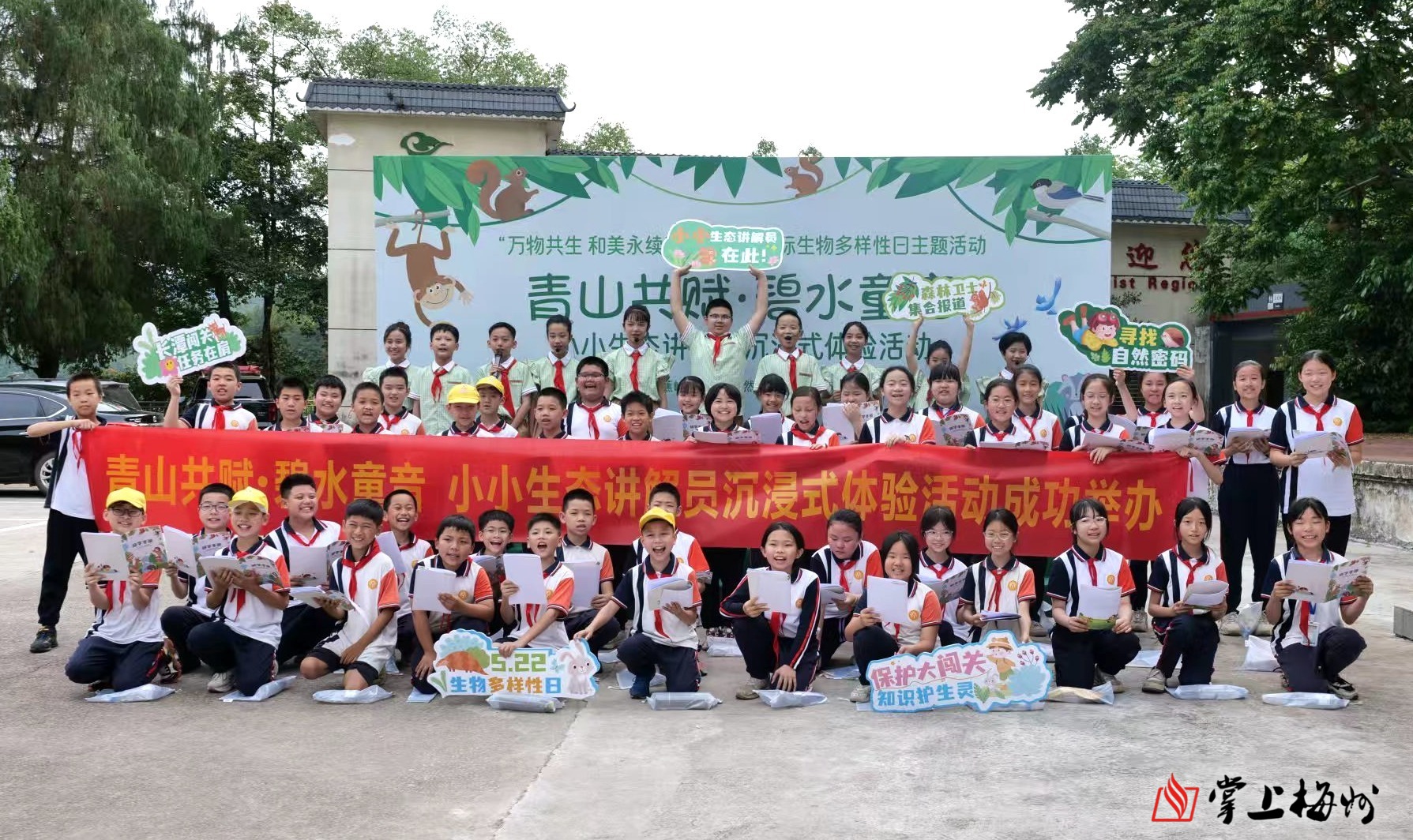 掌上梅州讯 日前,在第25个国际生物多样性日当天,广东蕉岭长潭省级自然保护区管理处举办了“青山共赋·碧水童音”小小生态讲解员沉浸式体验活动。本次活动突破传统自然教育模式,通过“语言艺术+自然教育”的跨界融合,构建了立体化的生物多样性教育平台。