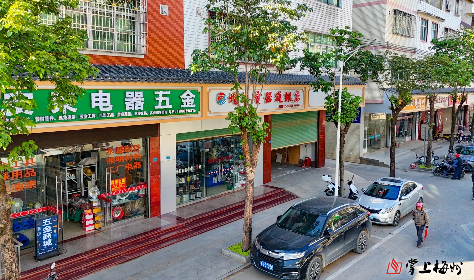 ↑圩镇店铺的屋檐、招牌、防盗网、外立面都进行了统一风格改造。