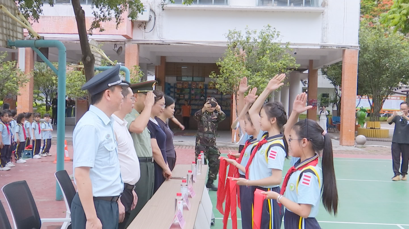 蕉岭县友邦小学学生 郑苡晴:刚才退伍军人讲述的国旗知识,让我感受到革命先辈们用热血铸就新中国的艰辛历程,更深刻体会到了国家安全的重要性。作为小学生,我们应该热爱祖国,努力学习,成为建设社会主义现代化的接班人。