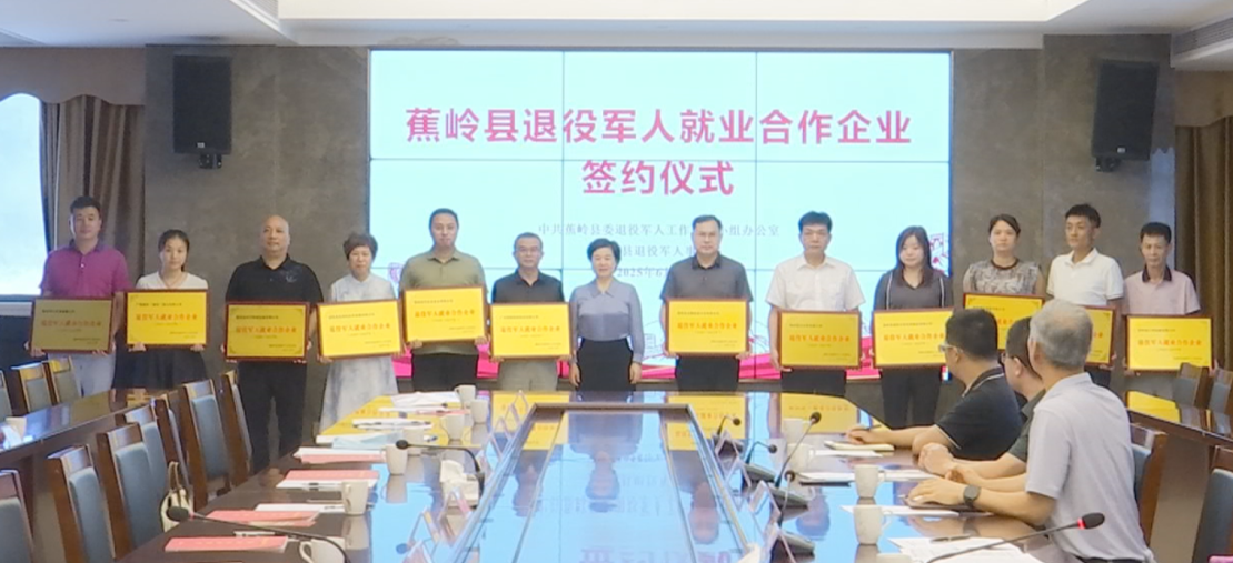 蕉岭县退役军人事务局与14家企业逐一签订《退役军人就业合作协议》,张慧为合作企业颁发“退役军人就业合作企业”牌匾。据悉,合作企业将提供涵盖总经理助理、运营总监、经理、文员、技工、普工等27种职位140个就业岗位,助力退役军人高质量就业。