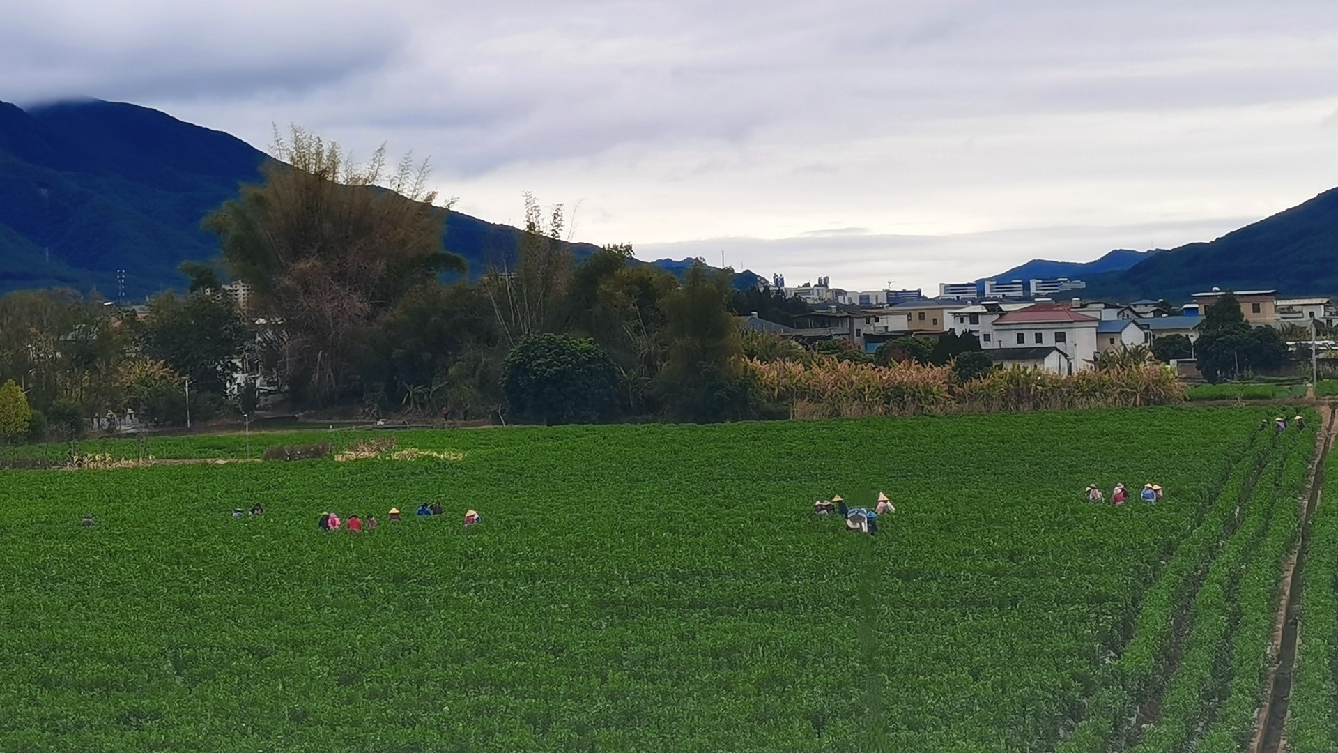 农户们正在采摘蚕豆
