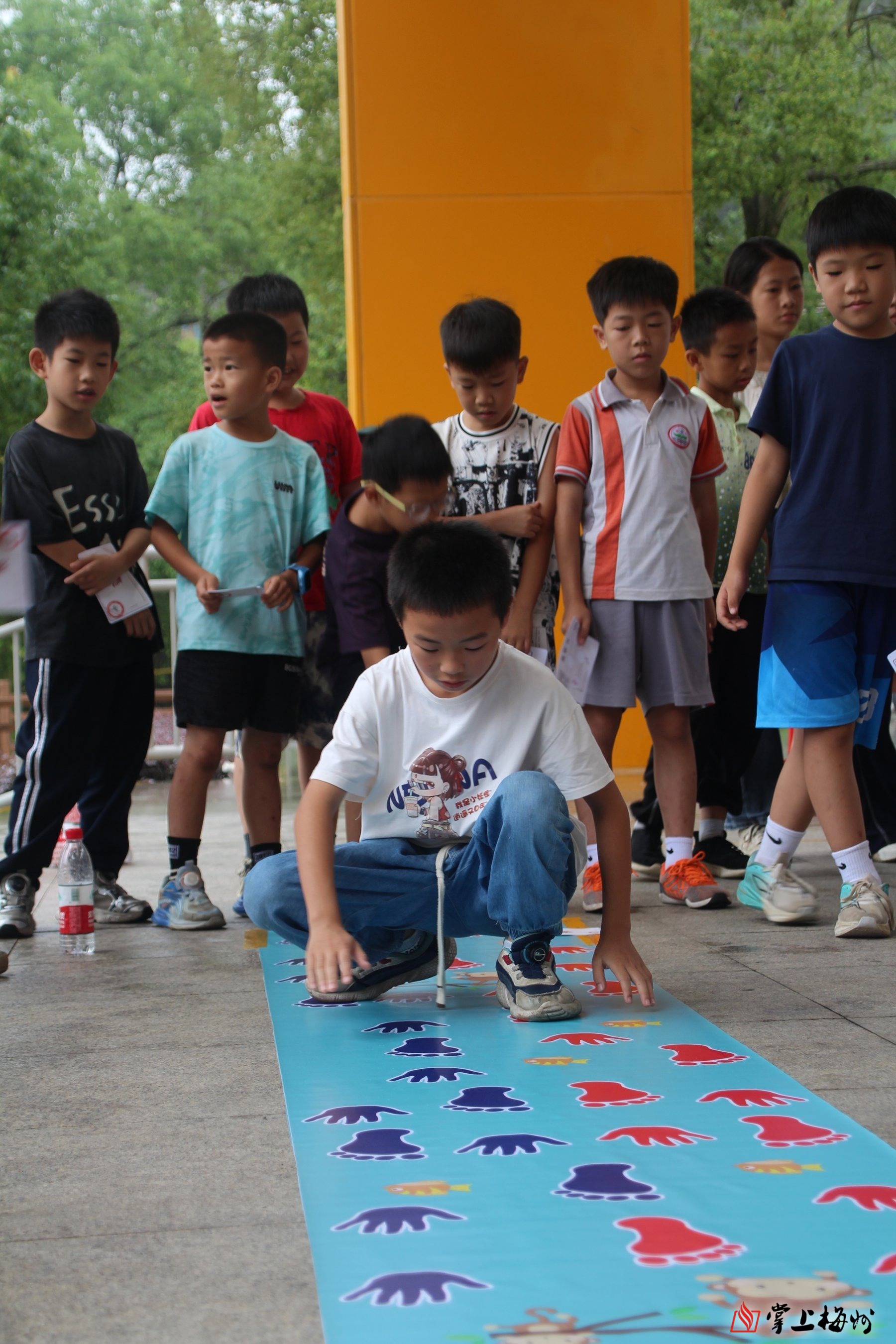 此次运动会精心设置了“英雄炸碉堡”“重走长征路”“巧渡金沙江”“齐心迈新程”这四个融合红色历史元素的特色项目,让青少年在竞技中感悟革命精神。在“英雄炸碉堡”环节,孩子们化身“小战士”,奋力将沙包投向象征敌人碉堡的靶心,每一次精准命中都引发阵阵欢呼,在模拟实战中深刻体会革命先辈的果敢与担当。“重走长征路”环节是模拟红军长征路线,沿途设置“大渡河”“赤水河”等关键节点打卡。孩子们一边聆听历史讲解一边收集纪念徽章,在活动中感悟红军将士不畏艰险、勇往直前的革命精神。地面布设的湍急江流图案,构成了“巧渡金沙江”项目的独特赛道,孩子们需快速准确踩点通过,在速度与技巧比拼中重现红军突破封锁的智慧。压轴项目“齐心迈新程”中,孩子们分组协作操控象征时代列车的“履带”前进。伴随着“一二一”的口号声中,他们默契协调步伐,在共同前进中深刻体会到团结协作的力量。
