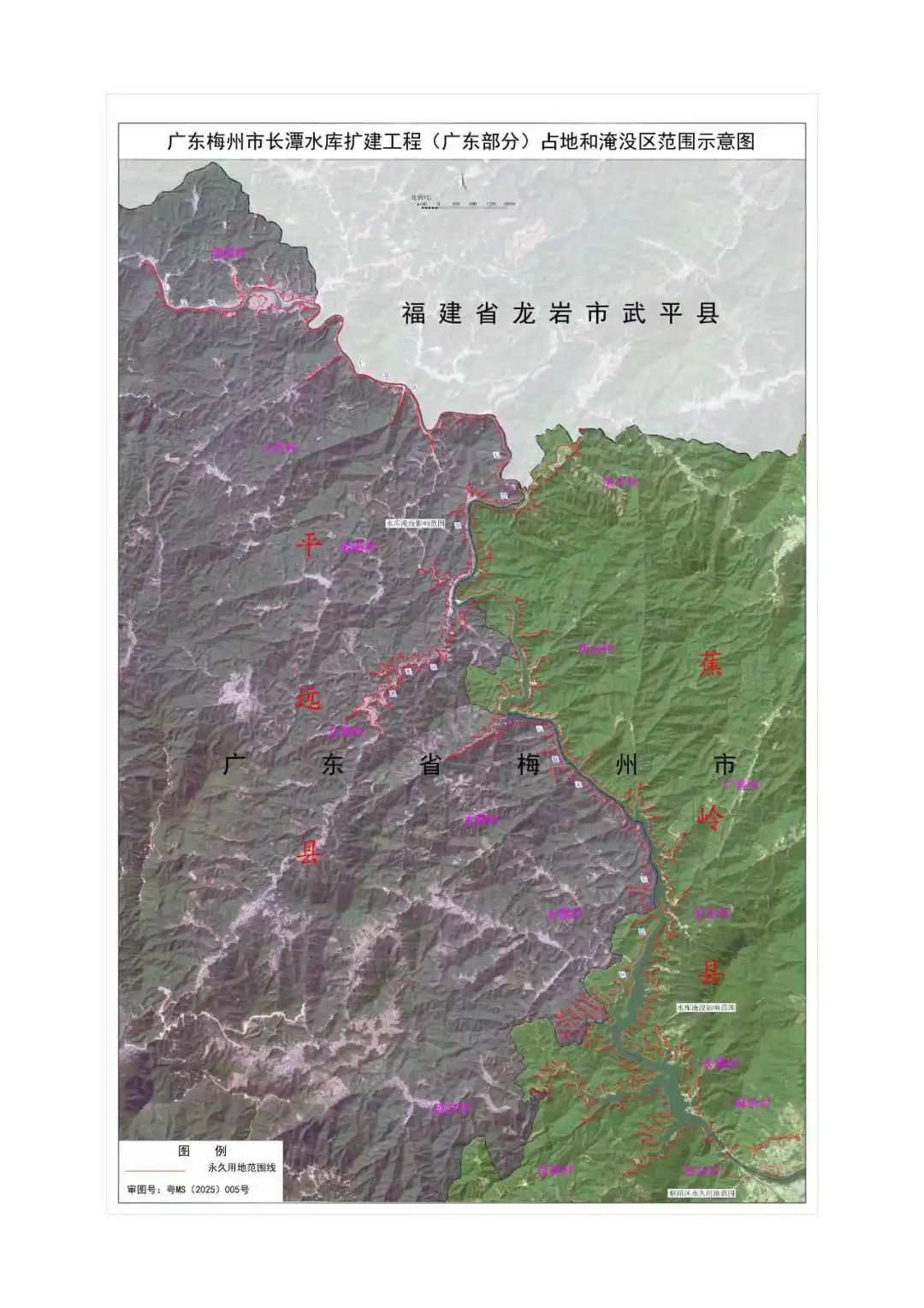 附件:广东梅州市长潭水库扩建工程(广东部分)占地和淹没区范围示意图