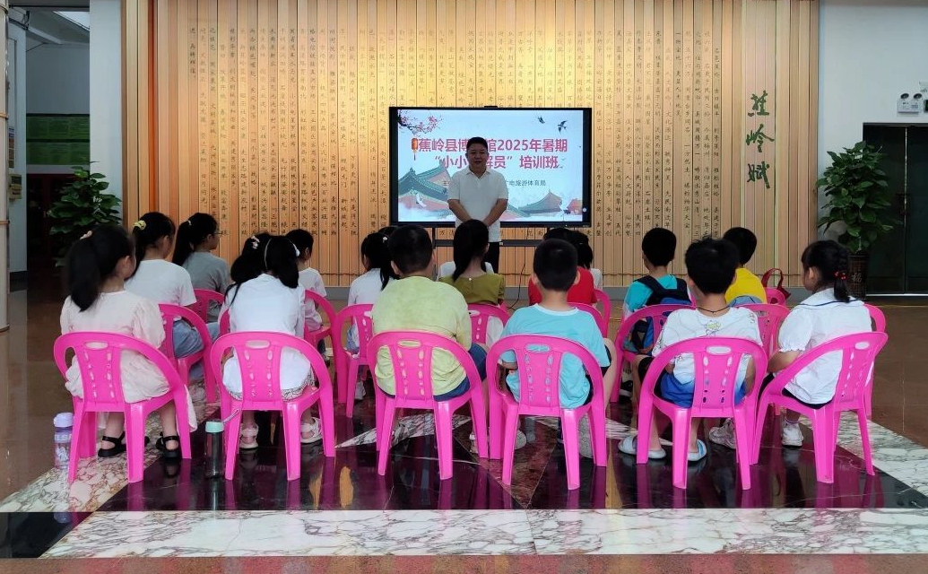 为丰富青少年暑假期间的文化生活,激发他们对蕉岭历史文化的兴趣与热爱,提升语言表达和社会实践能力,日前,蕉岭县博物馆举办的2025年暑期“小小讲解员”培训班正式开班,18名青少年开启为期一周的文化探索与讲解之旅。