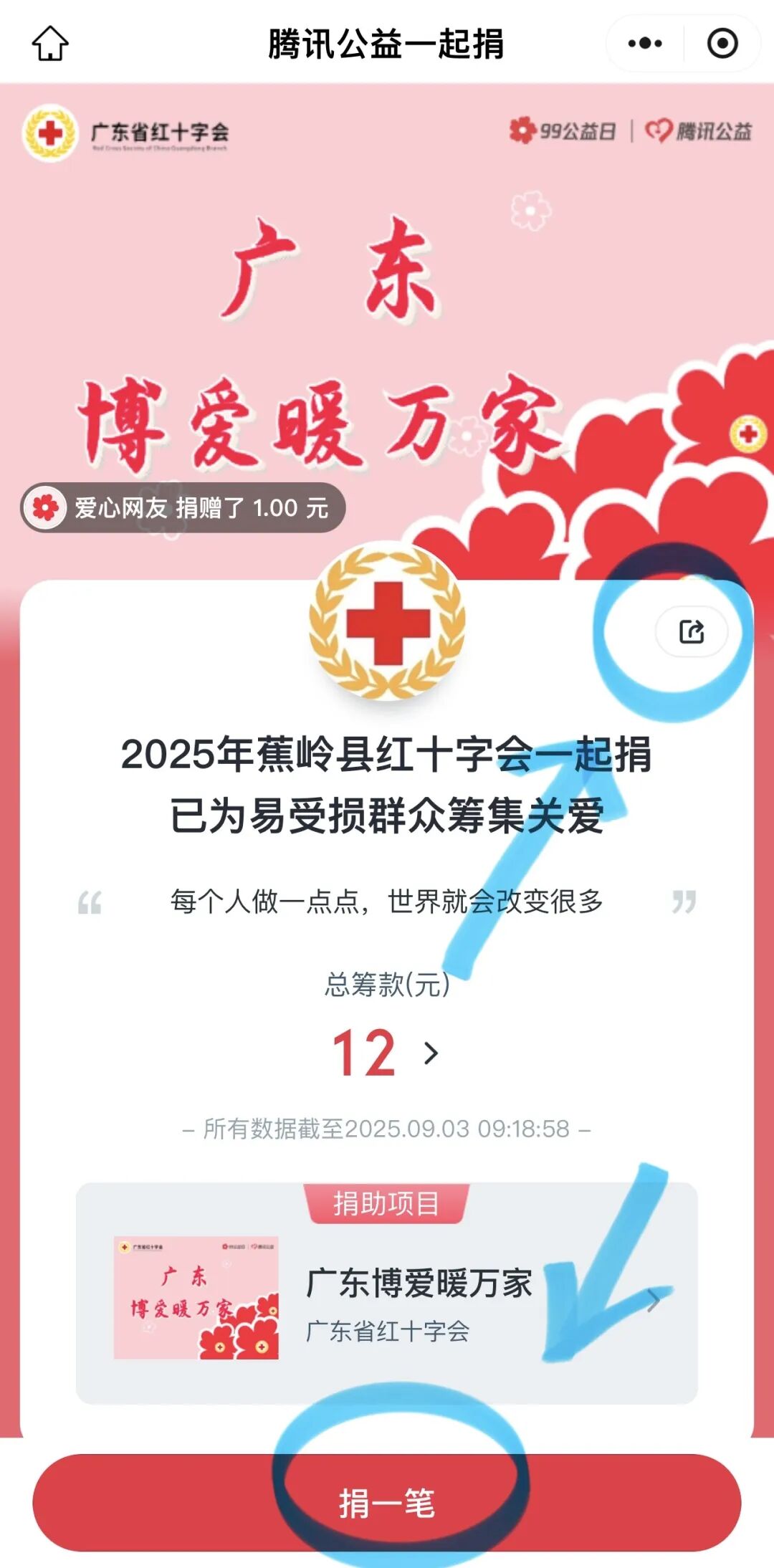 善行久久,爱心汇聚。为充分发挥红十字会作为党和政府在人道领域联系群众的桥梁和纽带作用,值此秋意渐浓、满载收获与期盼的美好时节,蕉岭县红十字会在梅州市红十字会发起的“广东博爱暖万家”一起捐项目下组队,广泛动员社会各界利用社交化的移动互联网,以轻量、便捷和快乐的方式参与公益。筹集的善款用于对困境群众进行人道关怀和节日慰问。