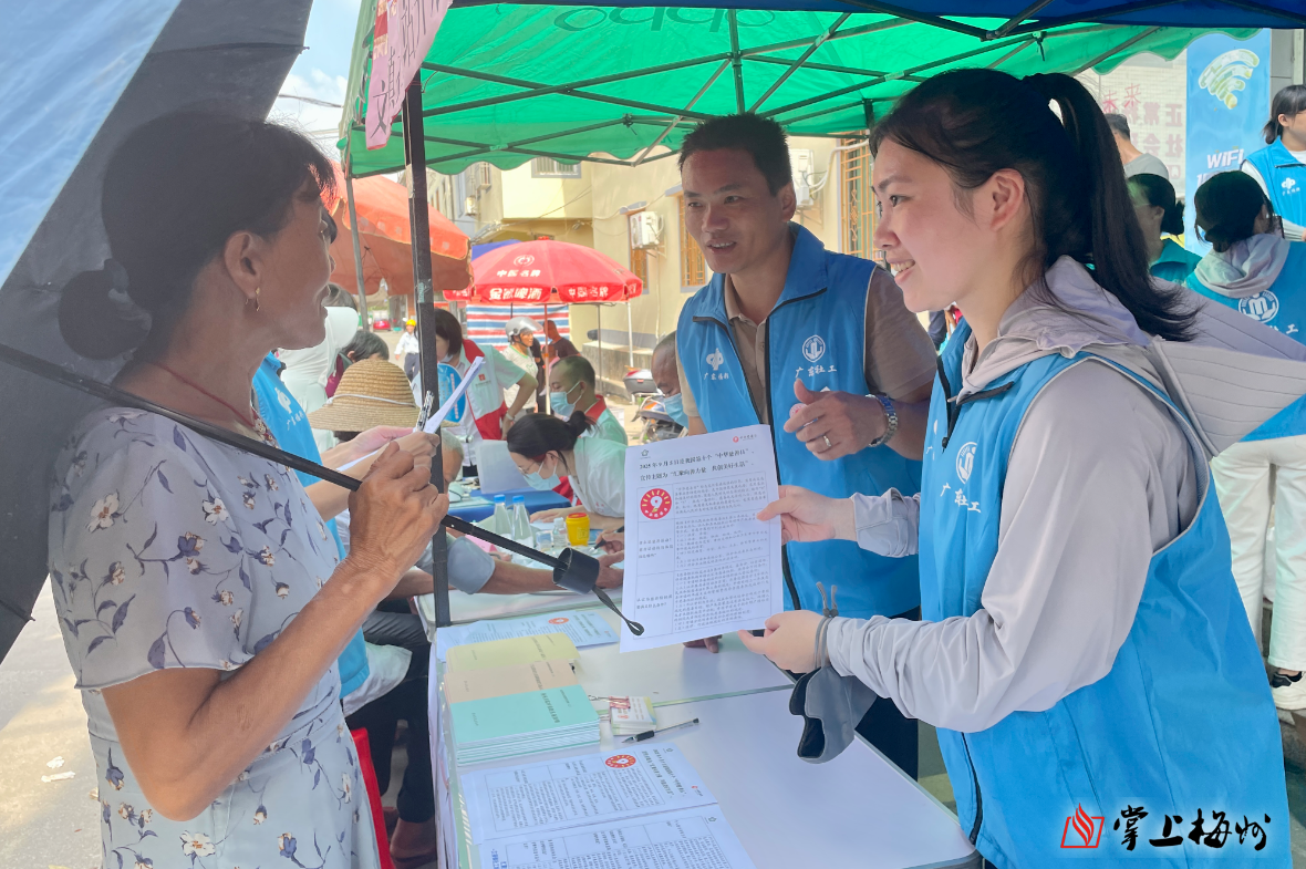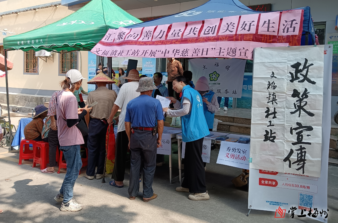 掌上梅州讯 9月4日上午,蕉岭县文福镇社工站联合梅州市铁炉桥医院、文福镇卫生院、秀勇发室、蕉岭县同心社会工作服务中心、中国电信文福营业厅开展第十届“中华慈善日”主题宣传活动。