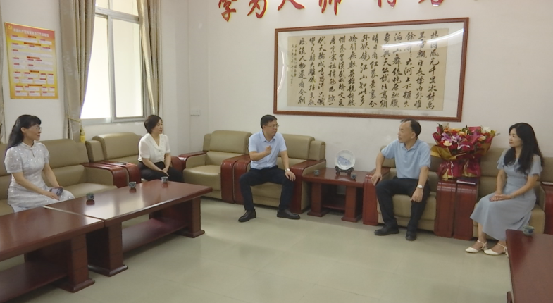 刘裕君一行首先来到华侨中学,与华师附中帮扶挂职教师李思灯、彭雪华亲切交谈,详细询问他们在蕉岭的工作和生活情况,感谢他们对蕉岭教育事业的支持和辛勤付出,希望各位支教老师坚持“用心、用情、用力”开展教育帮扶,将先进的教学理念和深厚的专业素养毫无保留地带到一线实践中,充分发挥示范引领和辐射带动作用,助力蕉岭教学质量、师资素质和办学水平提升。