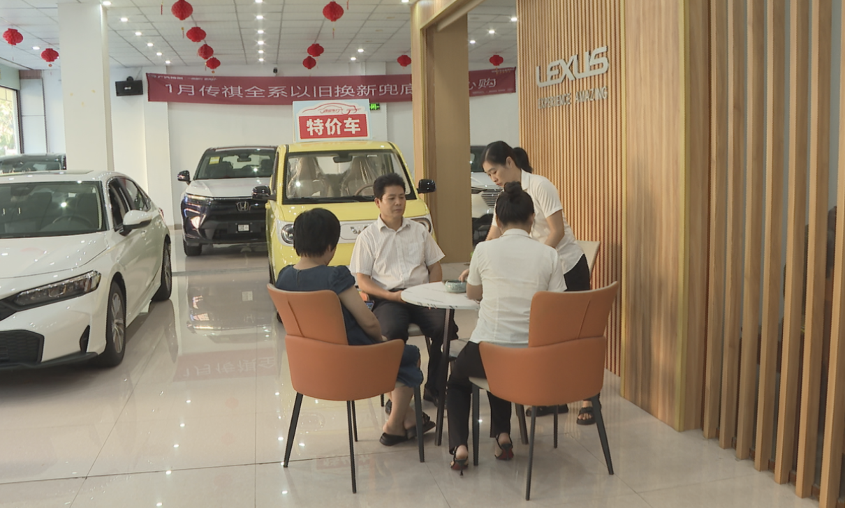 鸿运汽贸车行销售 丘丽梅:国庆期间,进店客户量比平时上升了三成,而且现在国家推行新能源车,所以来购车的客户,看新能源汽车比较多。新能源汽车主要(优势)是环保、省心、省油、省钱。现在(购买)新能源汽车优惠力度比较大,以比亚迪为代表,现金优惠可以最高补贴两万元,而且顾客如果有旧车置换的情况下,可以享受国家补贴加厂家补贴大概两到四万元,总计下来最高可以享受五万元的优惠。
