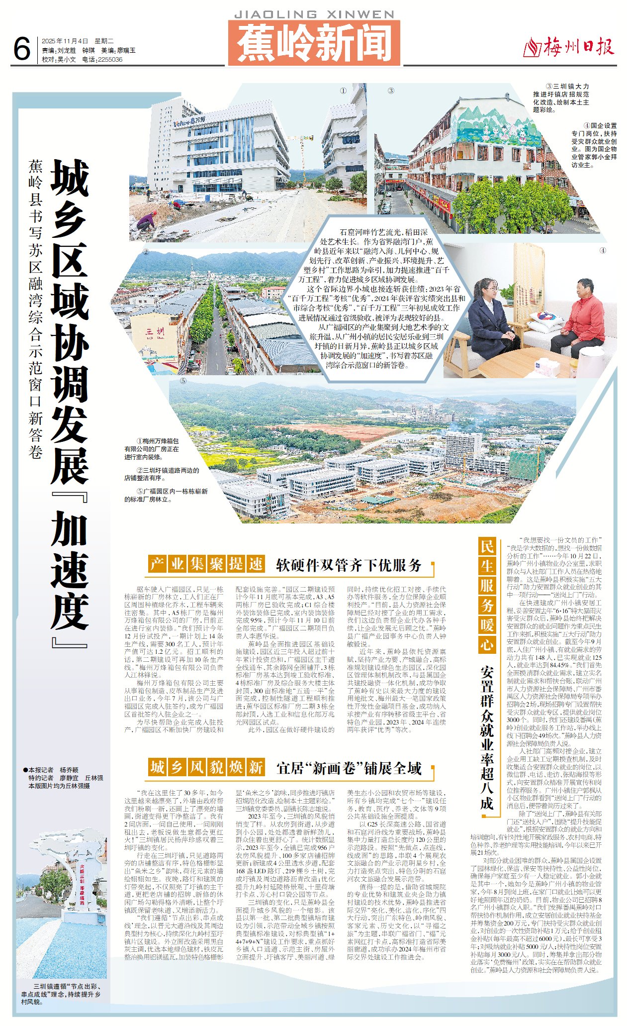 从广福园区的产业集聚到大地艺术季的文旅升温,从广州小镇的居民安居乐业到三圳圩镇的日新月异,蕉岭县正以城乡区域协调发展的“加速度”,书写着苏区融湾综合示范窗口的新答卷。
