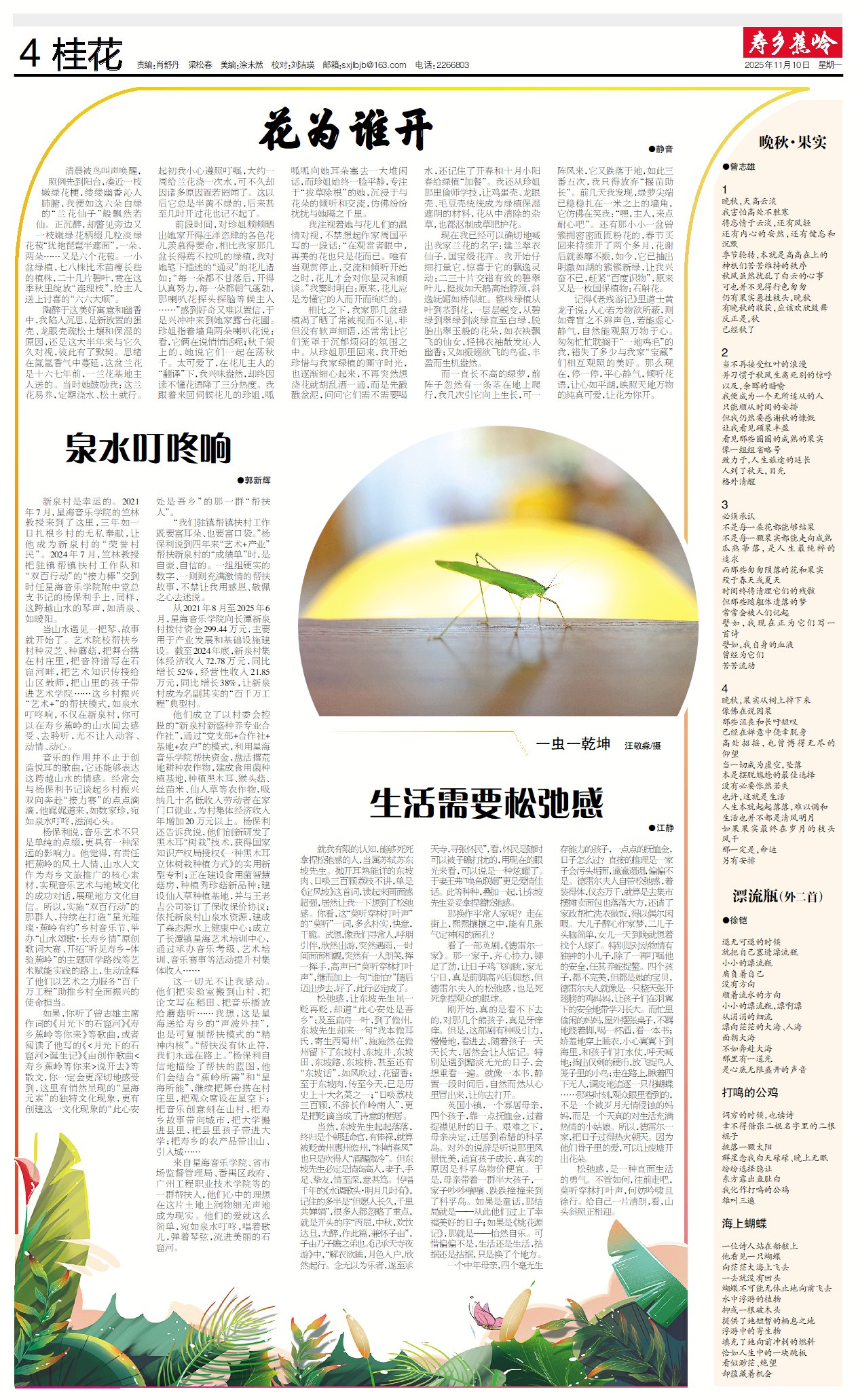 如果,你听了曾志雄主席作词的《月光下的石窟河》《寿乡蕉岭等你来》等歌曲,或者阅读了他写的《<月光下的石窟河>诞生记》《由创作歌曲<寿乡蕉岭等你来>说开去》等散文,你一定会更深切地感受到,这里有悄然呈现的“星海元素”的独特文化现象,更有创建这一文化现象的“此心安处是吾乡”的那一群“帮扶人”。