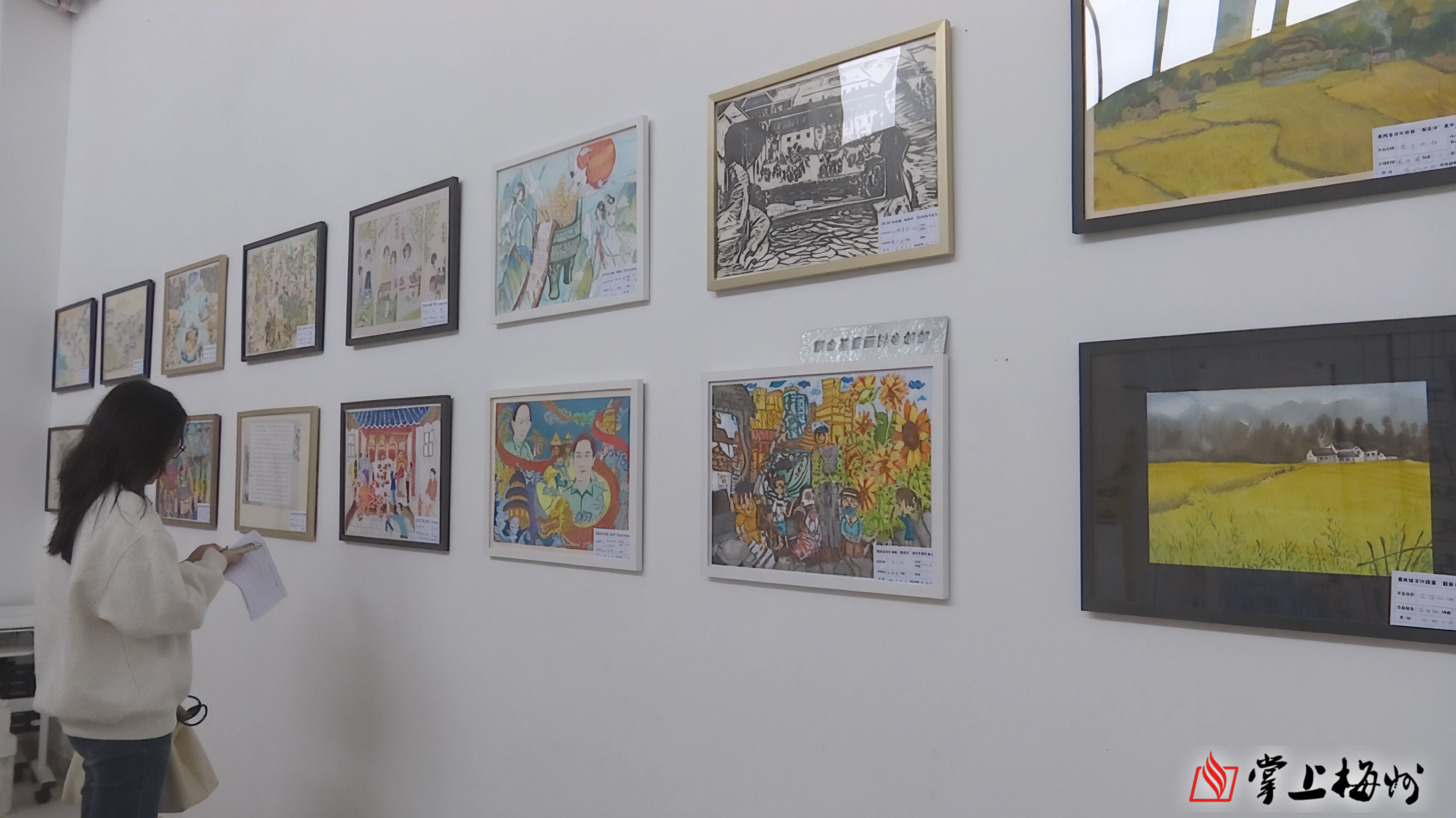 走进位于蕉城广州小镇的乡村画童美术馆,只见墙面、展架上满是小朋友的画作,有的细致勾勒出客家围龙屋的青瓦白墙与翘角飞檐,有的生动描绘出田间秋日晒谷的热闹场景,每一幅作品都饱含对艺术创作的热爱。馆内一侧,一群学生正围坐在一起制作掐丝珐琅,老师手持镊子与铜线,示范如何将铜线掐出作品的轮廓,耐心引导他们调整铜线弧度、优化色彩搭配,课堂上不时传来讨论与欢笑声。“以前在教室里画画,只能看到课本和老师的范画,现在美术馆里有好多原作和艺术品,灵感一下子就冒出来了。”学生丘芊荟笑着说。