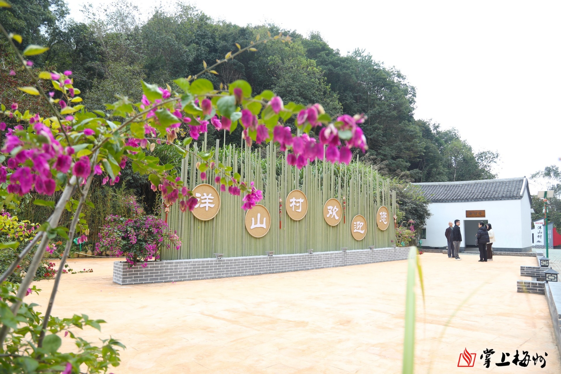 走进洋山村黄奎村民小组,映入眼帘的是白墙黛瓦的亦可亭。亭左侧是一扇竹制造型墙,横挂其间的“洋山村欢迎您”字样醒目亮眼。竹影与周边葱郁的林木相映成趣,红紫两色三角梅、桂花树和28株垂枝红千层为其增彩添色,勾勒出乡村的鲜活底色。亭右侧则是朱红色的竹艺造型景观墙,墙上“做深‘绿美’文章 赋能‘百千万工程’”的标语遒劲有力,与背后层叠的青山林海融为一体,生动诠释了洋山村向美而行、绿色发展的理念。此外,墙边还设有停车场和村牌建筑标识。“洋山村位于闽粤两省交界,其中黄奎村民小组临近上杭中都镇,是展示广东形象的一个重要窗口。”据洋山村党支部书记、村委会主任郭文增介绍,依托番禺区对口帮扶资金90万元,在洋山村黄奎建设洋山村驿站,完成“亦可亭”外立面修缮、道路硬化、绿化景观打造和宣传标识设置,并配套路灯、水电等基础设施。“我们尽可能在保留乡村肌理的基础上,融入竹艺、乡土花卉等本土元素建设洋山村驿站,将其作为洋山村标志性建筑,提升省际交界节点的整体形象,更好地发挥蕉岭融湾综合示范窗口效应,展示蕉岭加力提速推进‘百千万工程’的新进展新成效。同时,为往来人员提供便利的服务,促进区域间的经济、文化和人员交流与合作。”郭文增说。