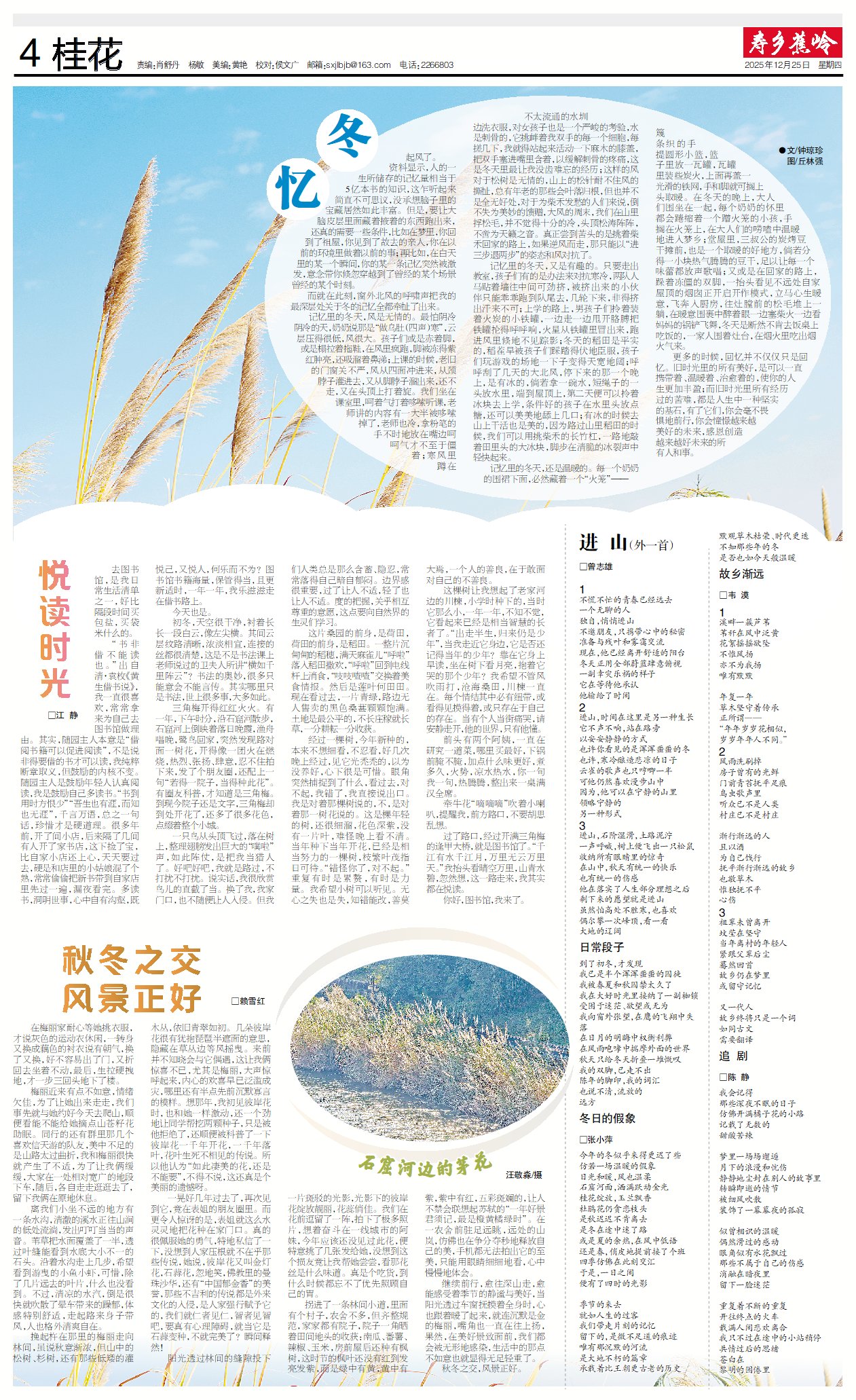记忆里的冬天,风是无情的。最怕阴冷阴冷的天,奶奶说那是“做乌肚(四声)寒”,云层压得很低,风很大。孩子们或是赤着脚,或是榻拉着拖鞋,在风里疯跑,脚被冻得紫红肿亮,还吸溜着鼻涕;上课的时候,老旧的门窗关不严,风从四面冲进来,从颈脖子灌进去,又从脚脖子溜出来,还不走,又在头顶上打着旋。我们坐在课室里,呵着气打着哆嗦听课,老师讲的内容有一大半被哆嗦掉了,老师也冷,拿粉笔的手不时地放在嘴边呵呵气才不至于僵着;寒风里蹲在不太流通的水圳边洗衣服,对女孩子也是一个严峻的考验,水是刺骨的,它挑衅着我双手的每一个细胞,每搓几下,我就得站起来活动一下麻木的膝盖,把双手塞进嘴里含着,以缓解刺骨的疼痛,这是冬天里最让我没齿难忘的经历;这样的风对于松树是无情的,山上的松针耐不住风的撕扯,总有年老的那些会叶落归根,但也并不是全无好处,对于为柴禾发愁的人们来说,倒不失为美妙的馈赠,大风的周末,我们在山里捊松毛,并不觉得十分的冷,头顶松涛阵阵,不啻为天籁之音。真正尝到苦头的是挑着柴禾回家的路上,如果逆风而走,那只能以“进三步退两步”的姿态和风对抗了。
