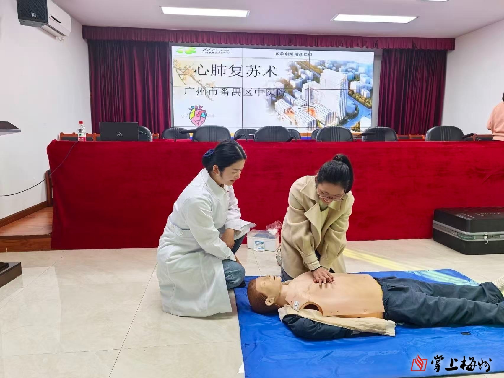 2025年12月,在蕉岭县中医医院领导班子带领下,广州市番禺区中医院的帮扶团队前往蕉岭县广福镇进行心肺复苏技能培训。这一次,张祝燕不是以探亲的女儿身份归来,而是作为一名急救培训者,站在了乡亲们的面前。