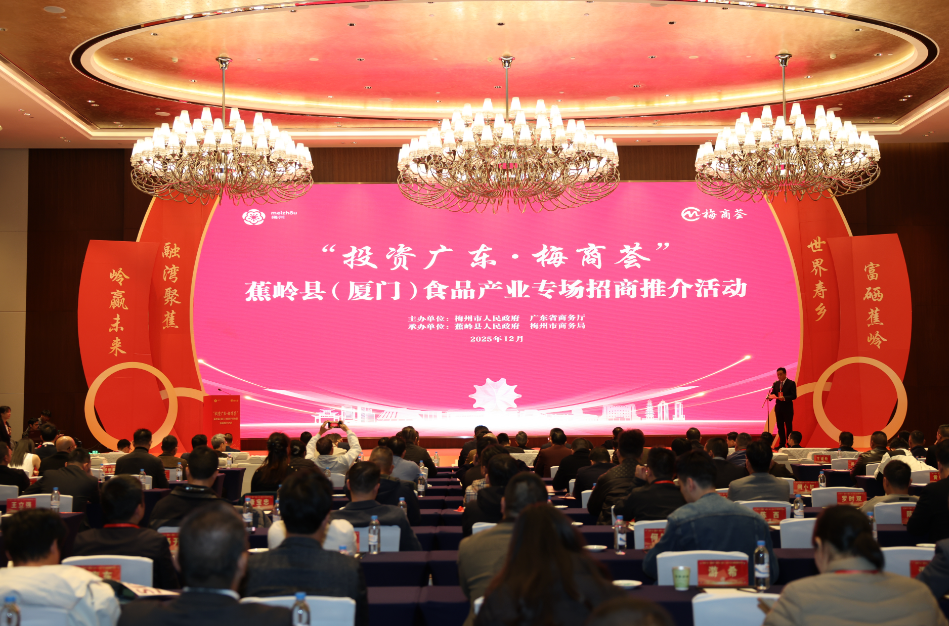 山海相约,共赢未来。为深入贯彻落实广东省委“1310”具体部署,进一步擦亮“世界寿乡·富硒蕉岭”品牌,助力蕉岭产业高质量发展,12月26日,“投资广东·梅商荟”蕉岭县(厦门)食品产业专场招商推介活动在福建鹭岛厦门举行。