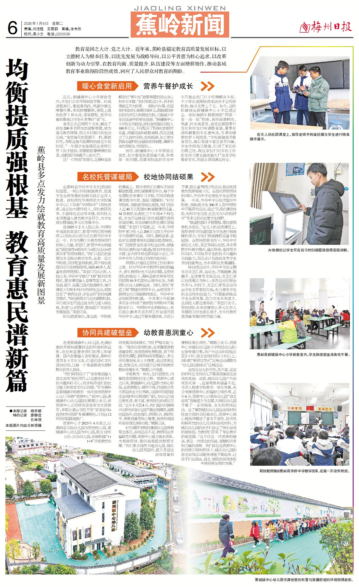 教育是国之大计、党之大计。近年来,蕉岭县锚定教育高质量发展目标,以立德树人为根本任务,以优先发展为战略导向,以公平普惠为核心追求,以改革创新为动力引擎,在教育均衡、质量提升、队伍建设等方面精耕细作,推动县域教育事业取得阶段性成效,回应了人民群众对教育的期盼。