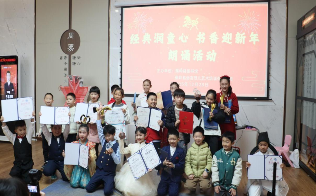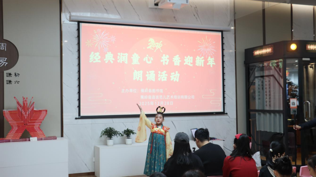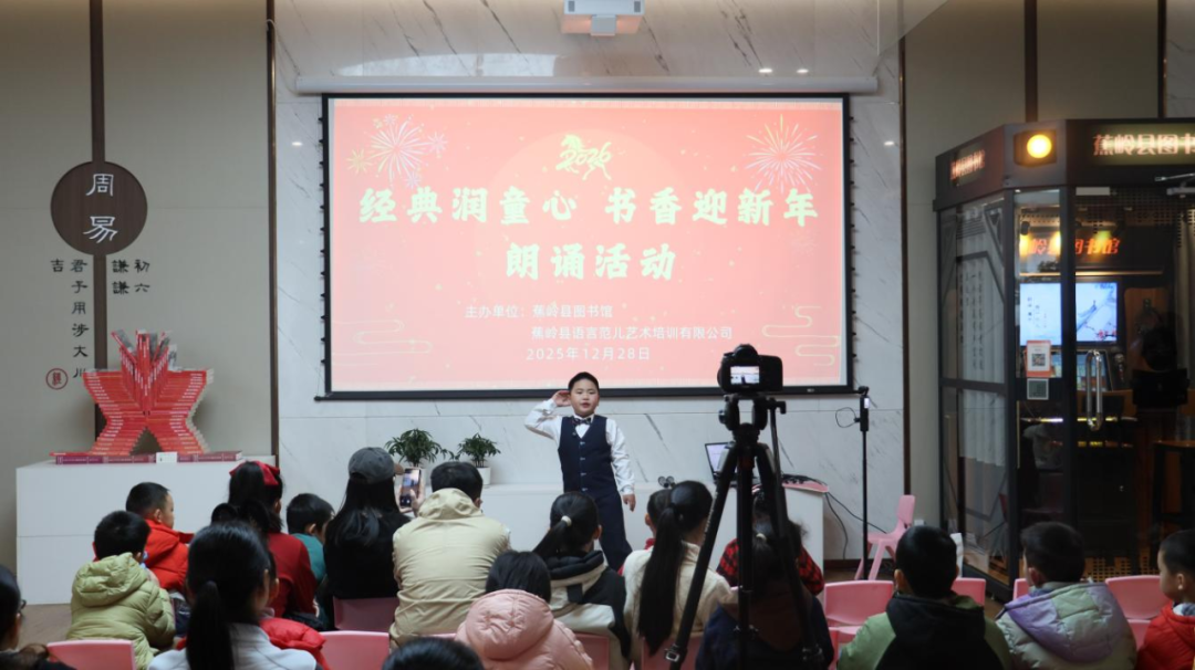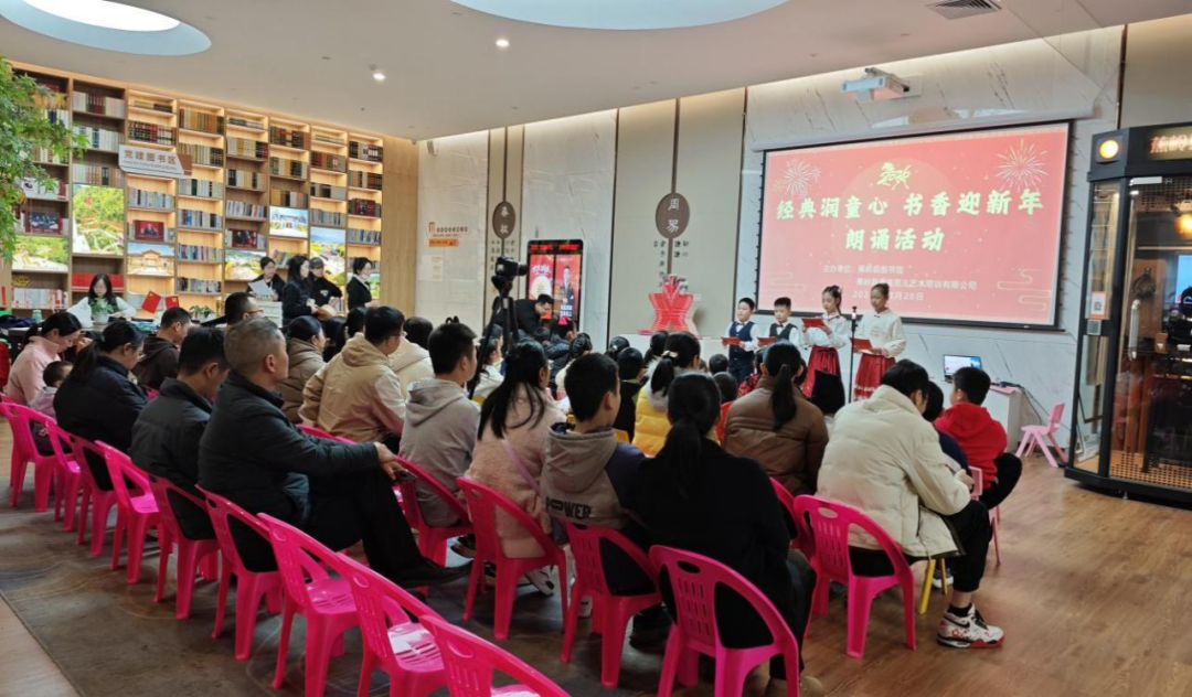 日前,蕉岭县图书馆、蕉岭县语言范儿艺术培训有限公司联合在丘成桐国际会议中心分馆举行“经典润童心 书香迎新年”朗诵活动。30多组热爱语言艺术的家庭齐聚一堂,用经典传递情感,以朗诵迎接新年,进一步推动经典阅读风尚,激发全民的阅读兴趣。