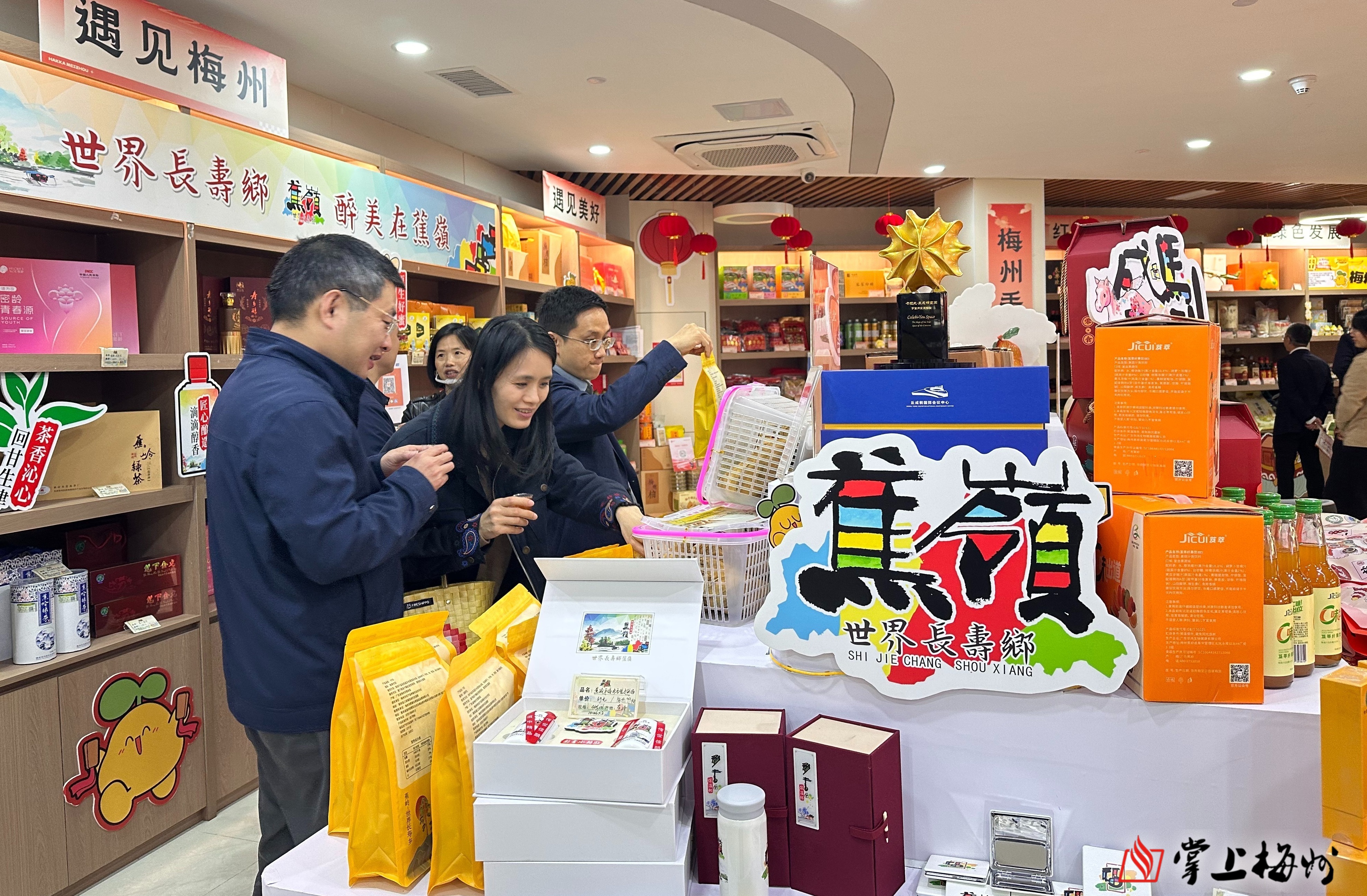掌上梅州讯 为深入推进“百千万工程”,充分展示蕉岭地理标志产品、绿色农产品、文创产品等特色产品,打响“世界寿乡 富硒蕉岭”品牌,1月20日,“客来是家人——‘百千万工程’梅州特色产品进省政府大院宣传推介活动”蕉岭专场在广东省人民政府大院一楼展示厅举办。