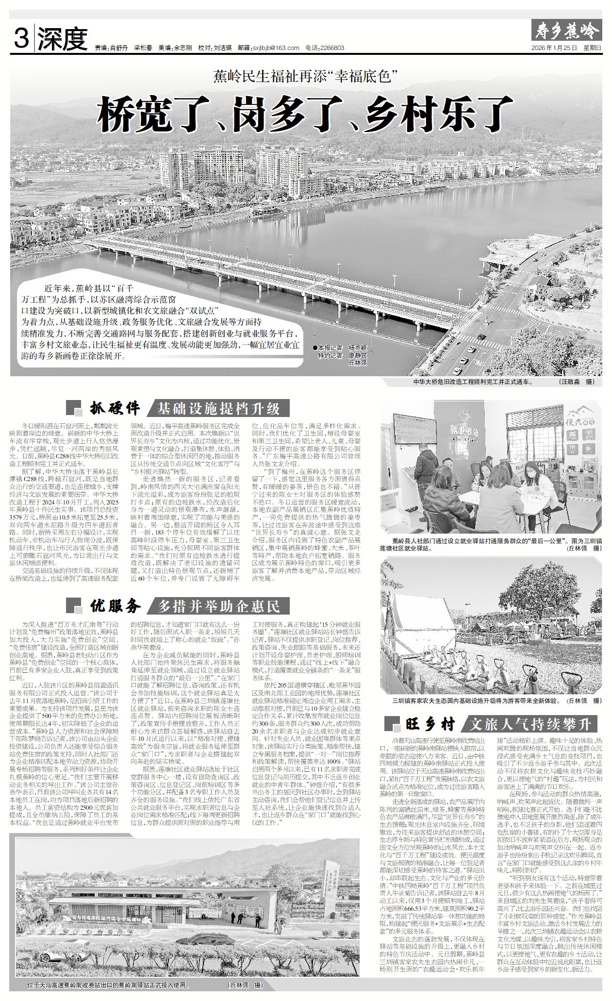 近年来,蕉岭县以“百千万工程”为总抓手,以苏区融湾综合示范窗口建设为突破口,以新型城镇化和农文旅融合“双试点”为着力点,从基础设施升级、政务服务优化、文旅融合发展等方面持续精准发力,不断完善交通路网与服务配套,搭建创新创业与就业服务平台,丰富乡村文旅业态,让民生福祉更有温度、发展动能更加强劲,一幅宜居宜业宜游的寿乡新画卷正徐徐展开。