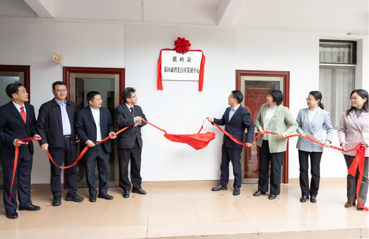 仪式上,县委书记、蕉华工业园区党委书记刘鸿涛,县委副书记、县长、蕉华工业园区管委会主任刘裕君,县人大常委会主任张伟杰,县政协主席钟梅芬,县委常委、副县长徐永岭,县委常委、组织部部长曹彦等一起为蕉岭县苏区融湾先行区发展中心揭牌。