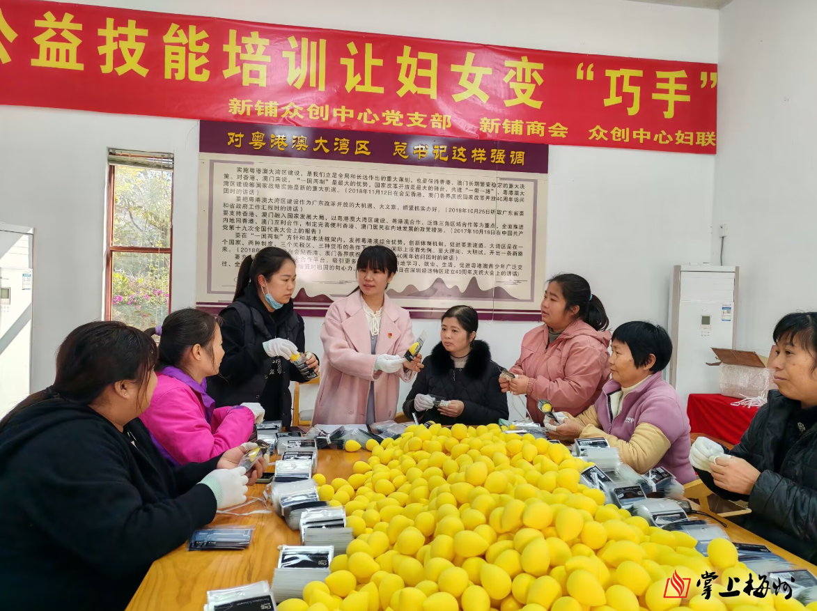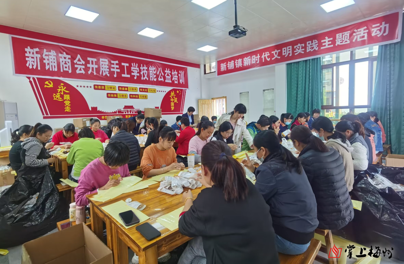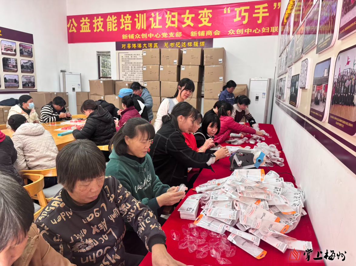 掌上梅州讯 日前,新铺众创中心妇联联合新铺商会多家爱心企业,开展为期半个月的针织、包装等实用技能公益培训,培训结束后,爱心企业还为参训妇女发放共约8万元的培训补贴,让她们既能学到本领,又收到温暖,欢欢喜喜迎新春。