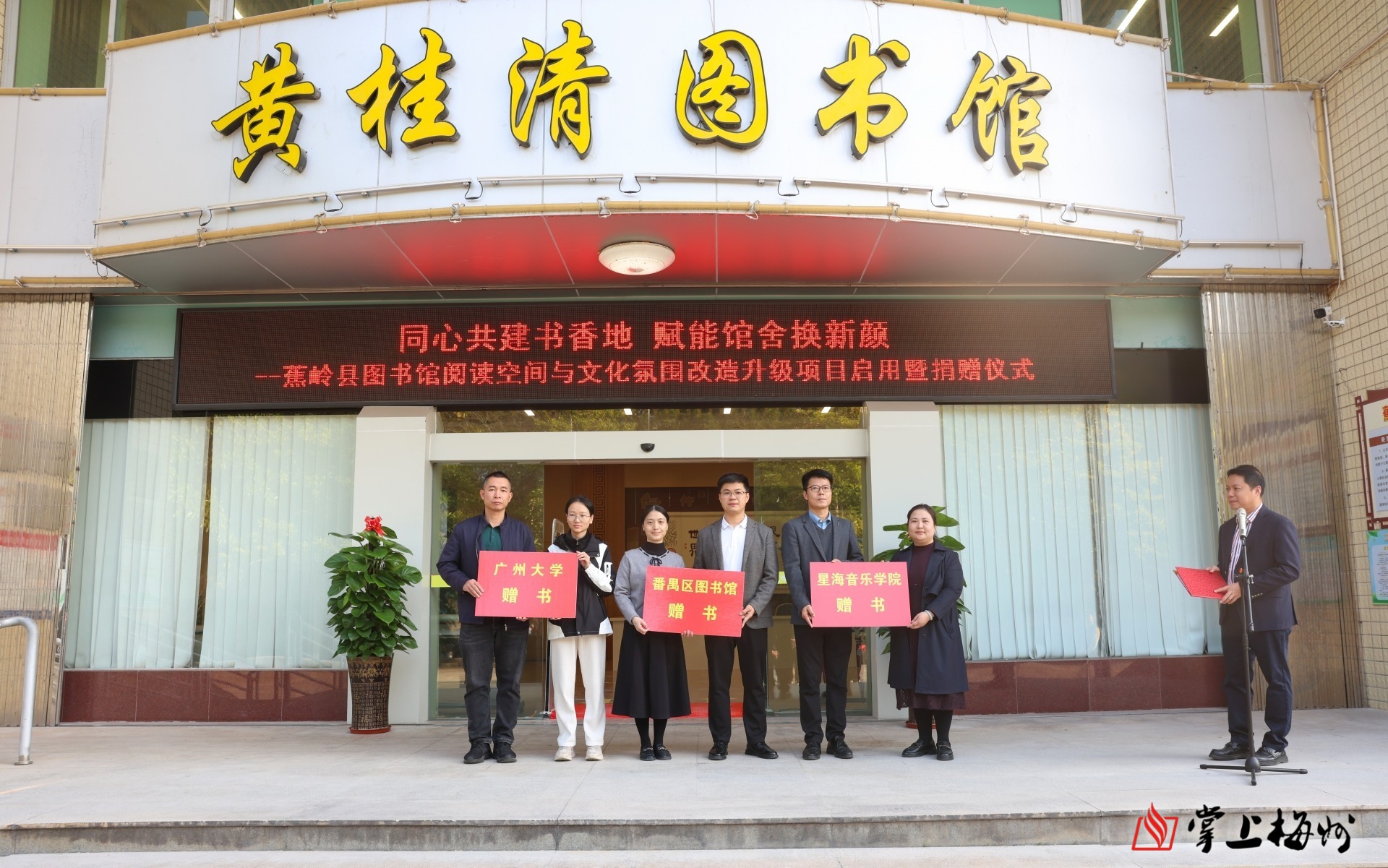 捐赠环节成为仪式亮点。星海音乐学院、广州大学、番禺区图书馆现场捐赠图书,为读者带来丰富的知识资源;广州市谨诚企业代理有限公司捐赠电脑设备,热心人士吴振和捐赠油画画册。“他们捐赠的不仅是书籍、设备和艺术珍品,更是对蕉岭文化未来的美好期许与宝贵支持。”番禺区对口帮扶协作蕉岭县工作队队员周贵业表示。