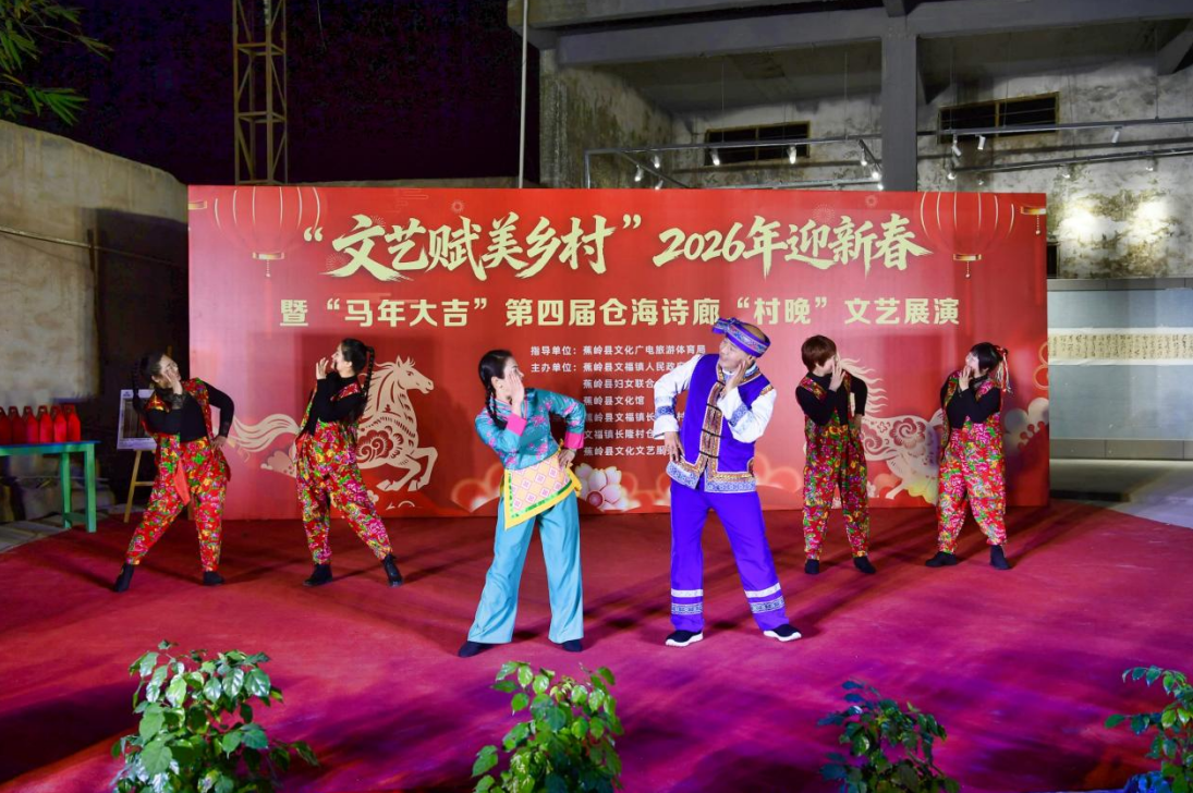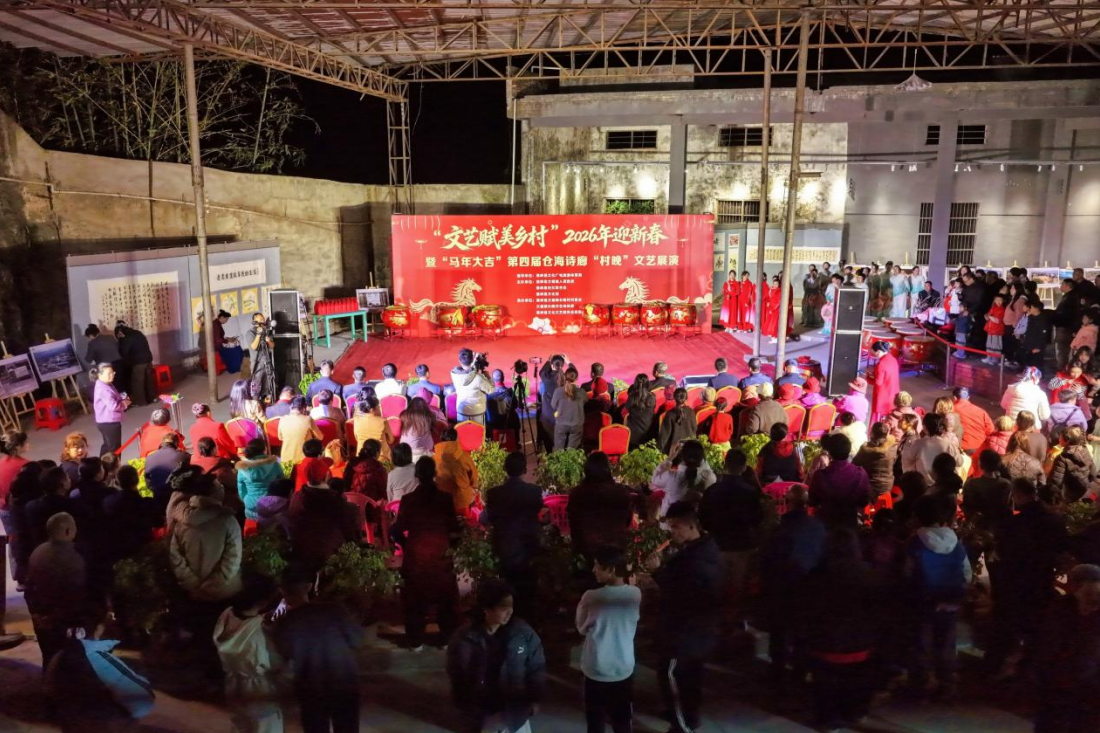 2月18日晚(农历正月初二),正值新春佳节,梅州市蕉岭县文福镇仓海诗廊灯火璀璨,喜气倍增。以“新春送福贺佳节”为主题的第四届仓海诗廊“村晚”隆重举行。村民们扶老携幼,欢聚在景区那棵苍劲挺拔的大榕树下,用最质朴、最热烈的方式展现乡村文化活力,营造出喜庆、祥和的节日氛围。