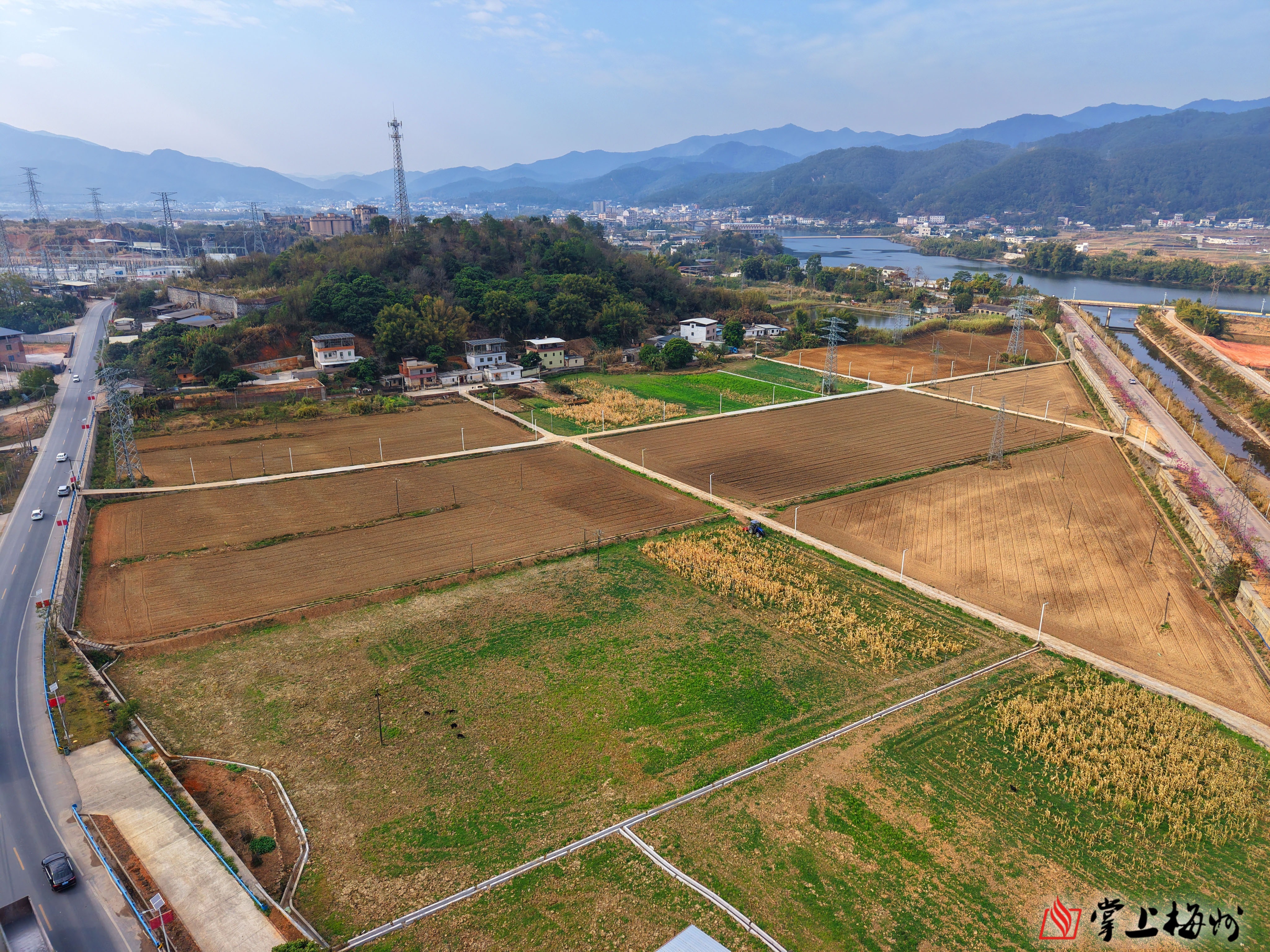 在蕉岭县新铺镇潘田村,一整片玉米已收获归仓,挖掘机正有序平整土地,为今年3月的水稻播种做好准备。