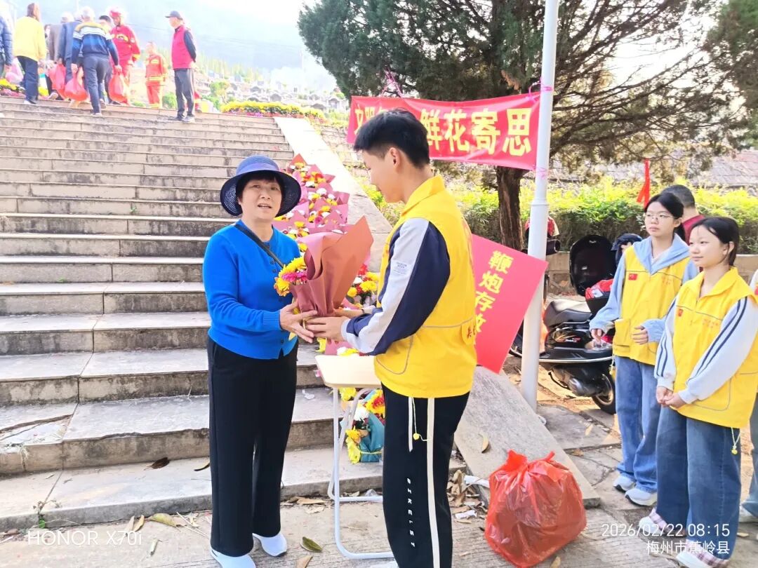 为切实做好春节期间文明祭扫与森林防灭火工作,大力倡导移风易俗新风尚,蕉岭县新铺镇政府联合新铺(商会)众创中心党支部、镇关爱协会,于春节期间组织开展“文明祭祀·鲜花寄思”志愿服务活动。镇村干部、党员、志愿者下沉一线,以暖心服务引导群众文明祭扫,让新春祭祀更安全、更环保、更暖心。