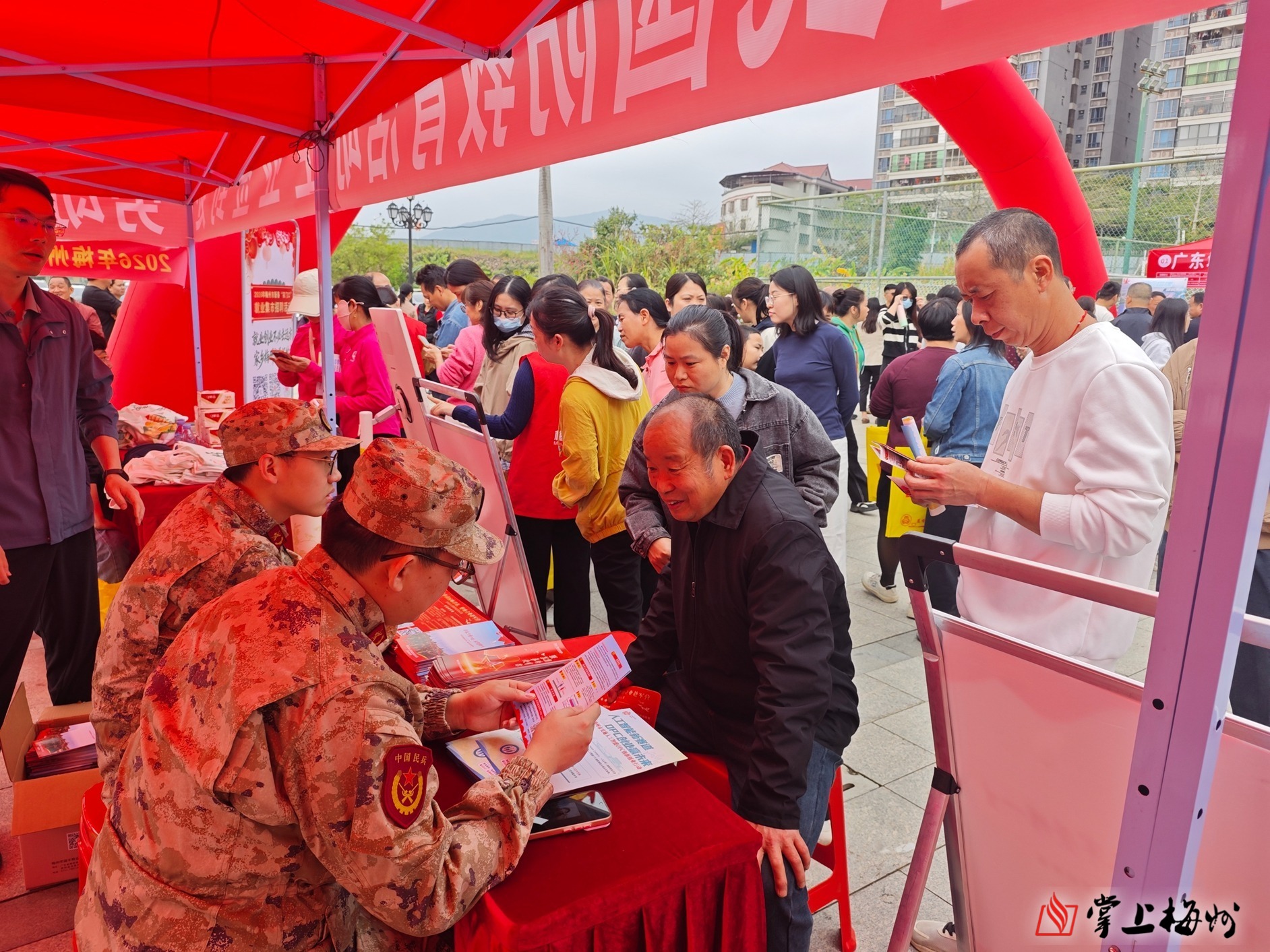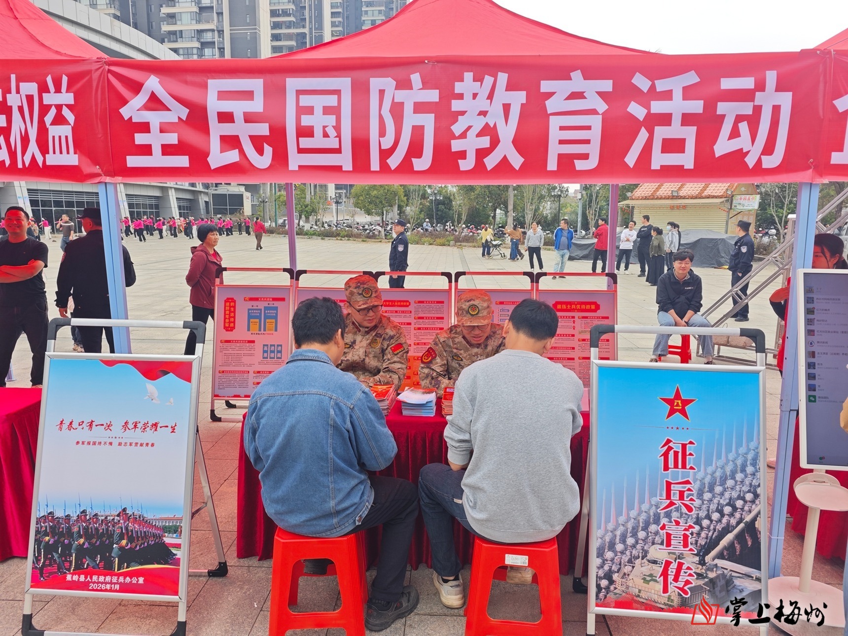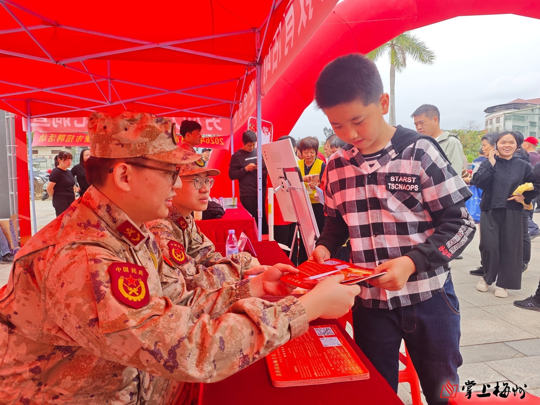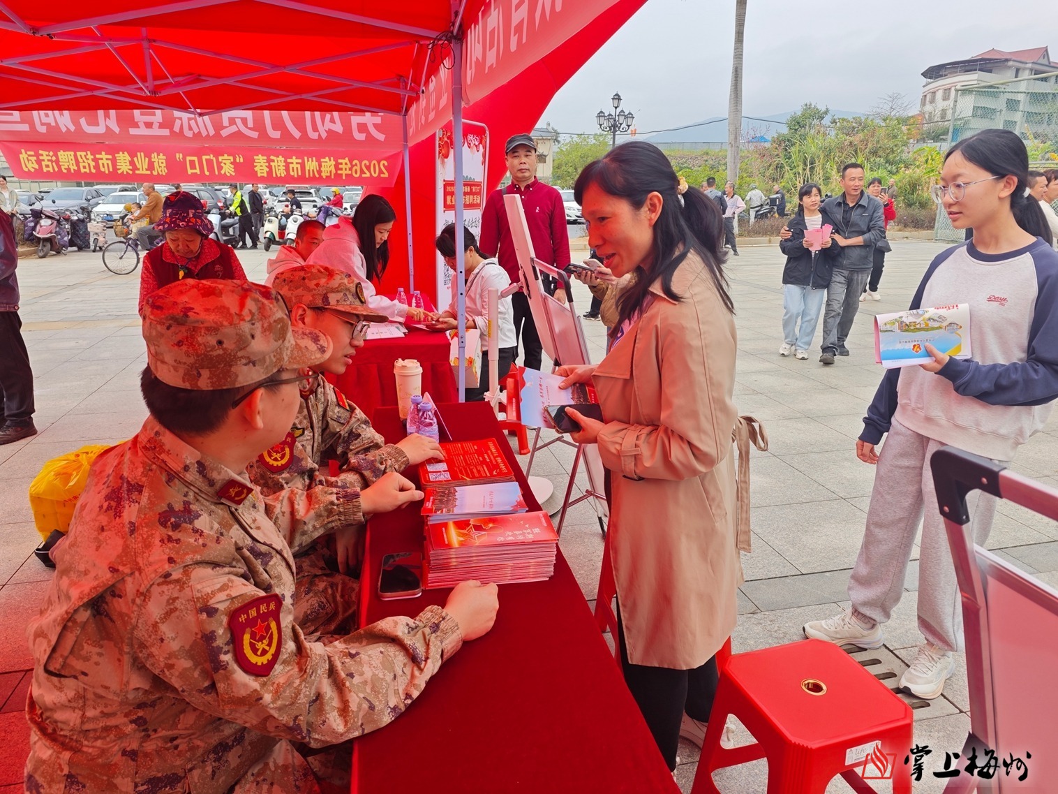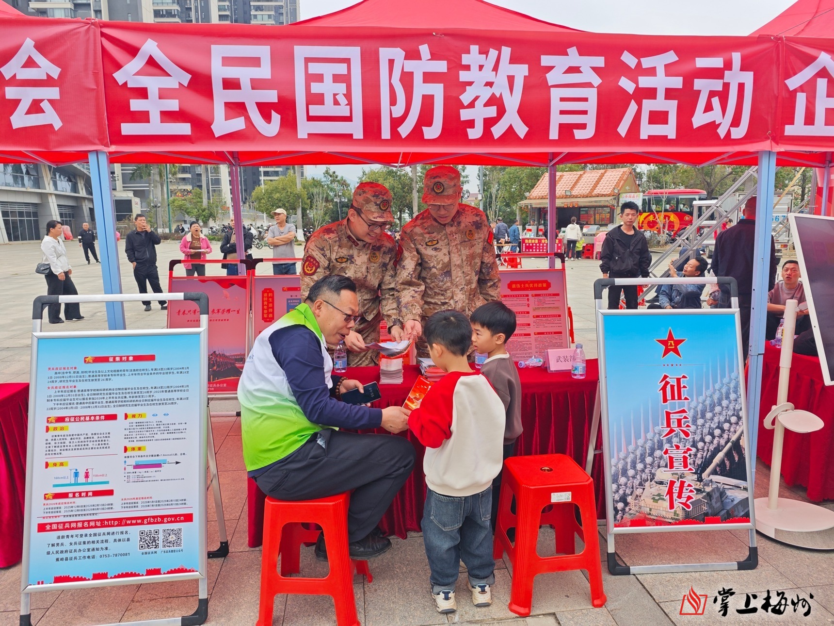 掌上梅州讯 为深入推进全民国防教育,扎实做好征兵宣传发动工作,拓宽高素质兵员征集渠道,2月26日,蕉岭县人武部联合县委宣传部走进辖区招聘会现场,开展全民国防教育活动,把国防观念、强军号召与参军政策送到求职青年和广大群众身边,实现就业服务与国防教育同频共振。