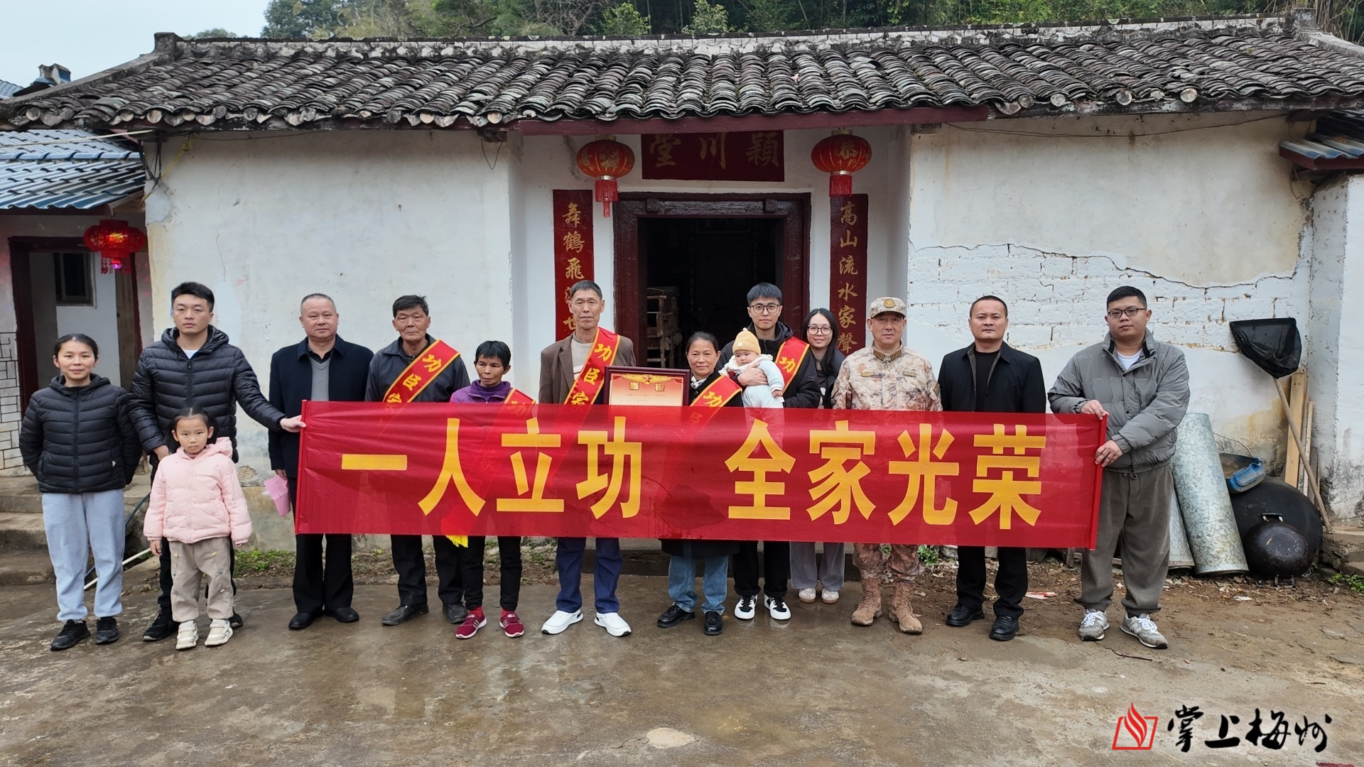 掌上梅州讯 敲锣打鼓传喜讯,邻里齐聚贺荣光。连日来,蕉岭县人武部主要领导带队,会同县退役军人事务局、三圳镇、南磜镇政府相关负责人开展“登门送喜”活动,为荣立三等功的现役军人钟诚威、罗永城家庭送上立功喜报,让军属共享荣耀时刻,让军人功勋家喻户晓。