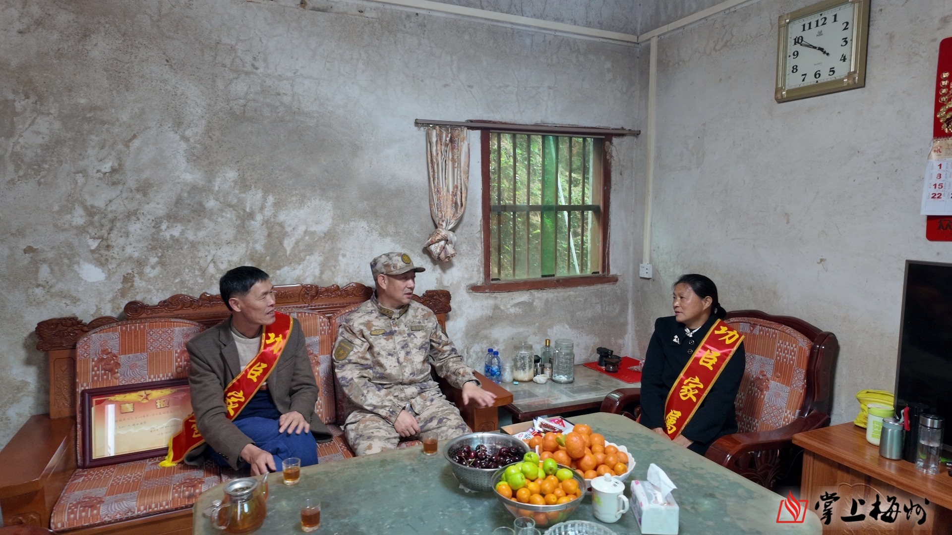 在父老乡亲的见证下,送喜报的队伍高举“一人立功,全家光荣”的横幅来到现役军人钟诚威、罗永城家中。县人武部主要领导首先代表部队当众宣读表彰通报,随后为军属披上“功臣家属”绶带并致以诚挚的问候和衷心的祝贺,感谢军属默默坚守后方、无私奉献支持国防,为部队培养输送优秀人才,筑牢军人安心服役的坚强后盾,期盼他们坚守岗位、苦练本领,为国防和军队建设贡献更多力量,为家乡再添光彩。