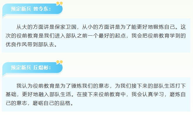 据悉,此次役前教育将通过理论学习、政治教育和体验式训练等活动,全面考察预定新兵的思想动态和身心素质,助力他们提前适应部队节奏,努力为部队输送政治合格、素质过硬的优质兵员。