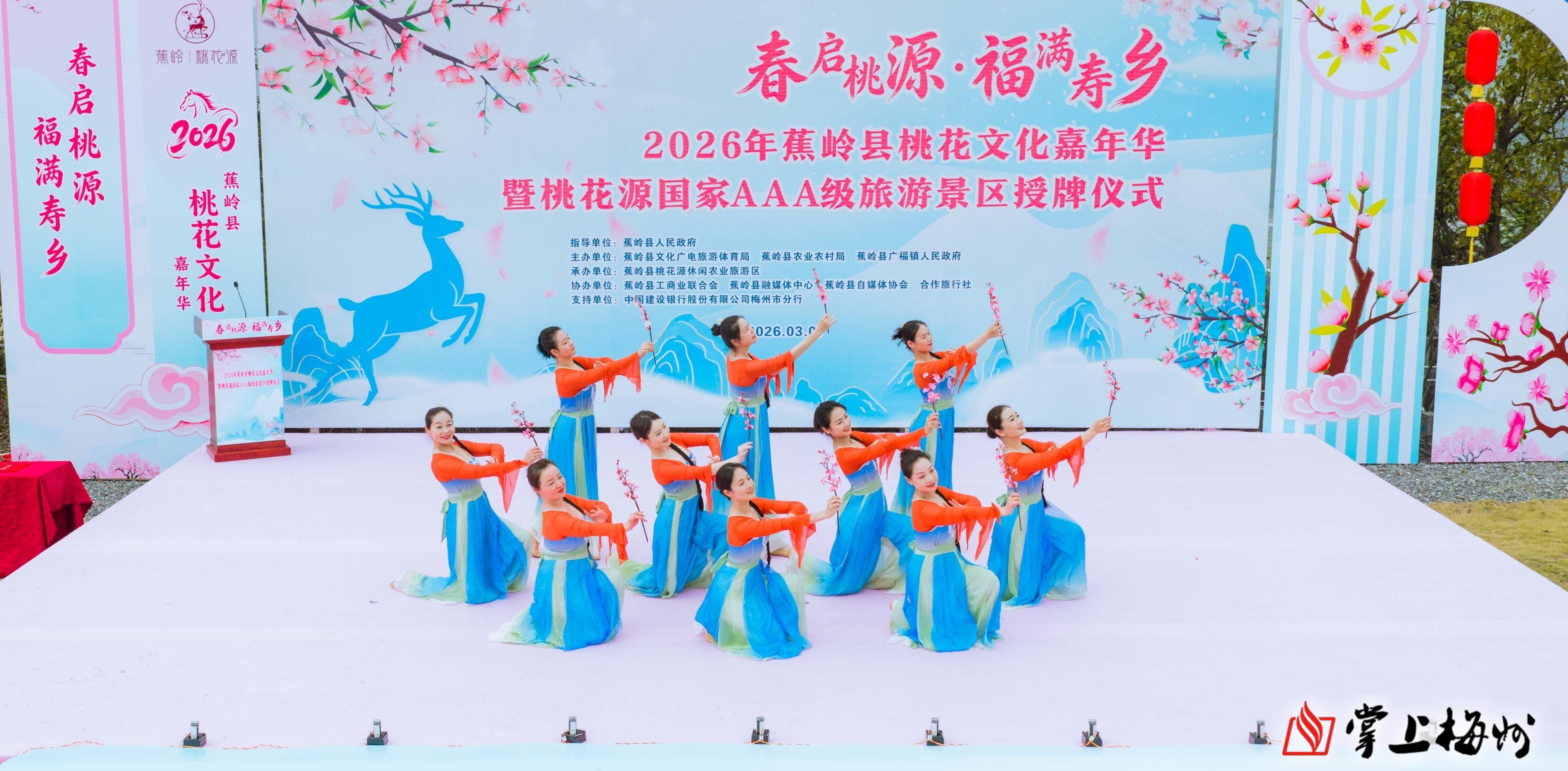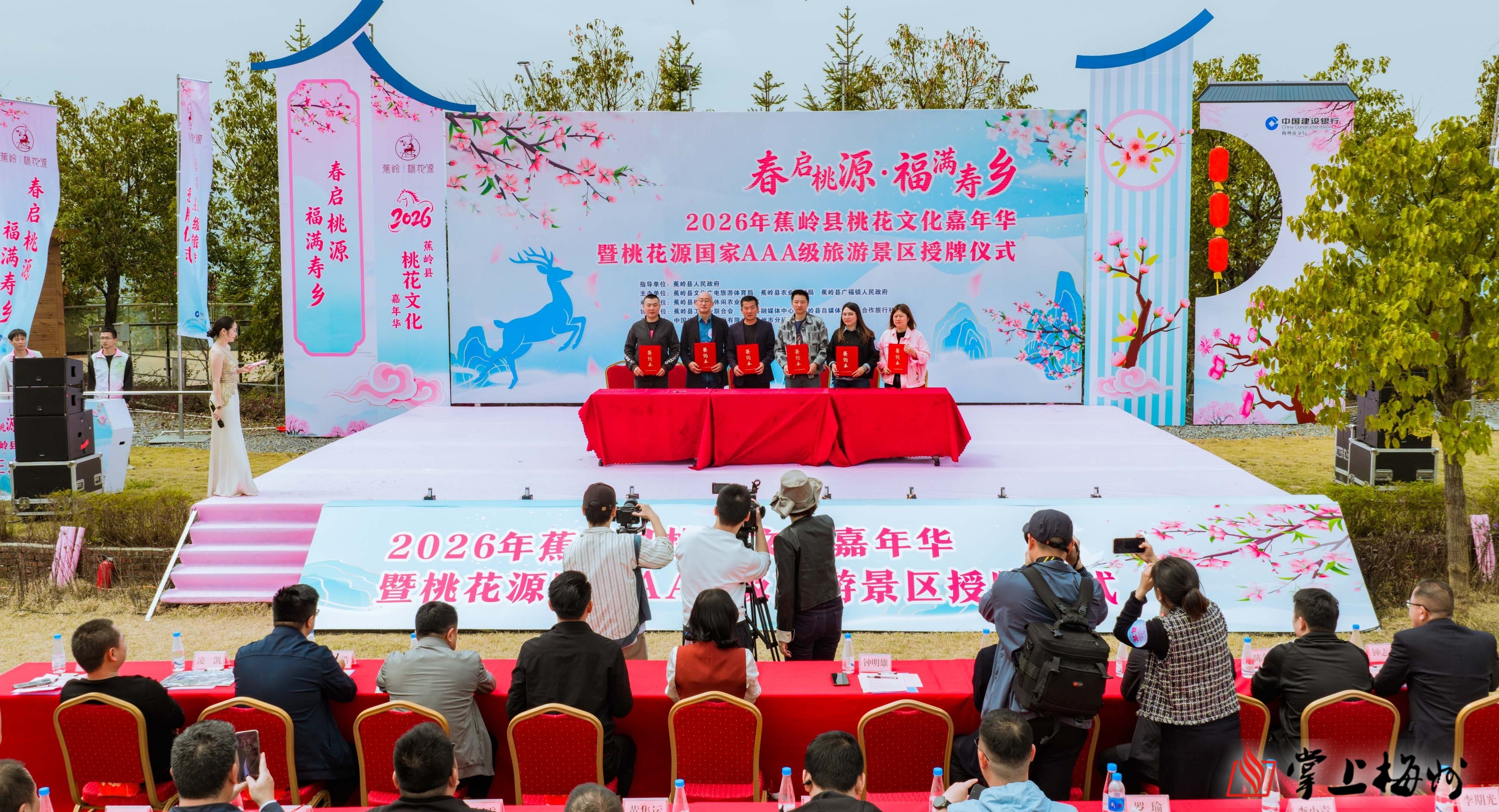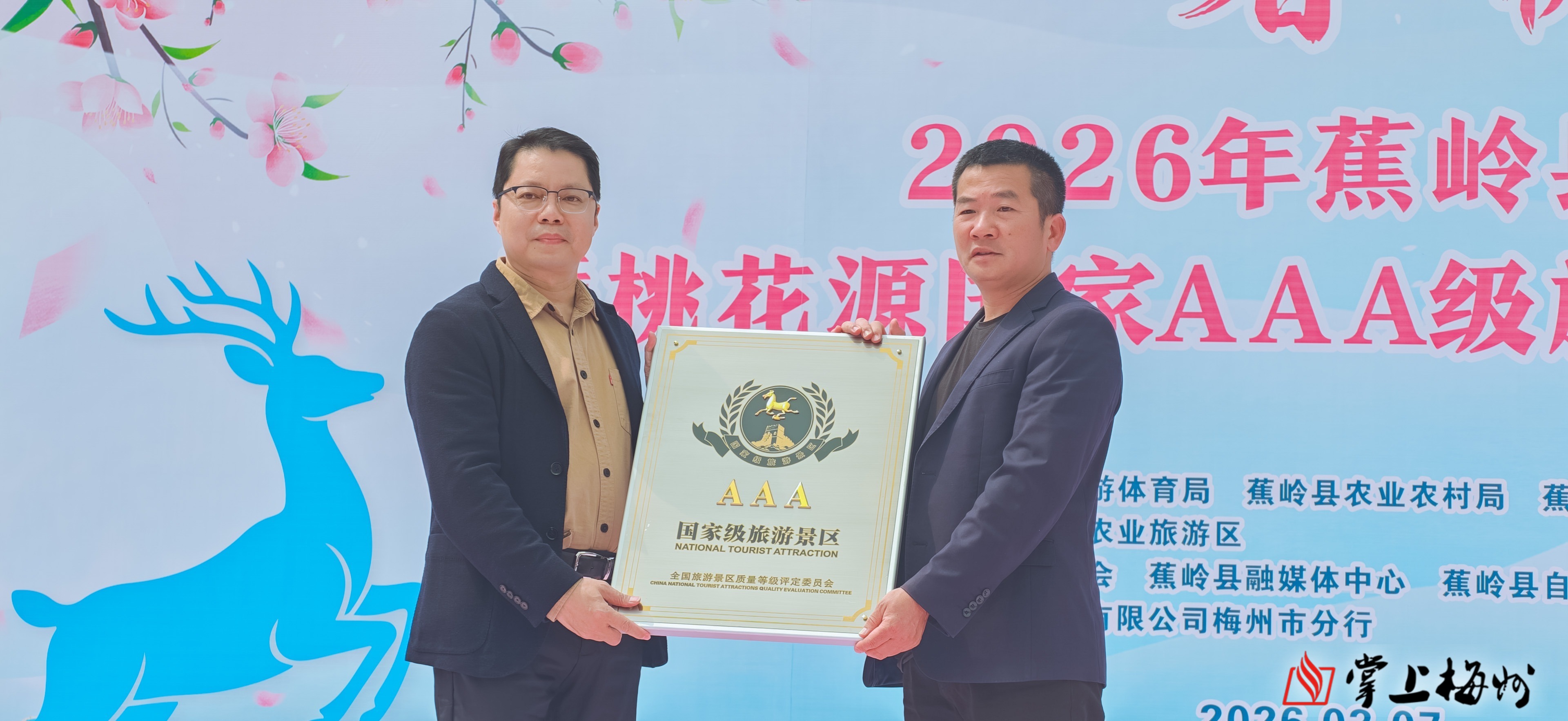 掌上梅州讯 三月桃源花似锦,寿乡迎客启新程。3月7日,“春启桃源·福满寿乡”2026年蕉岭县桃花文化嘉年华暨桃花源国家AAA级旅游景区授牌仪式,在梅州市蕉岭县广福镇桃花源休闲农业旅游区正式举办。本次活动以景区成功获评国家AAA级旅游景区为契机,紧扣“以花为媒、以节促旅、以旅兴产”核心,全方位展现蕉岭农文旅融合发展新成果,为深入推进“百县千镇万村高质量发展工程”注入强劲动能。