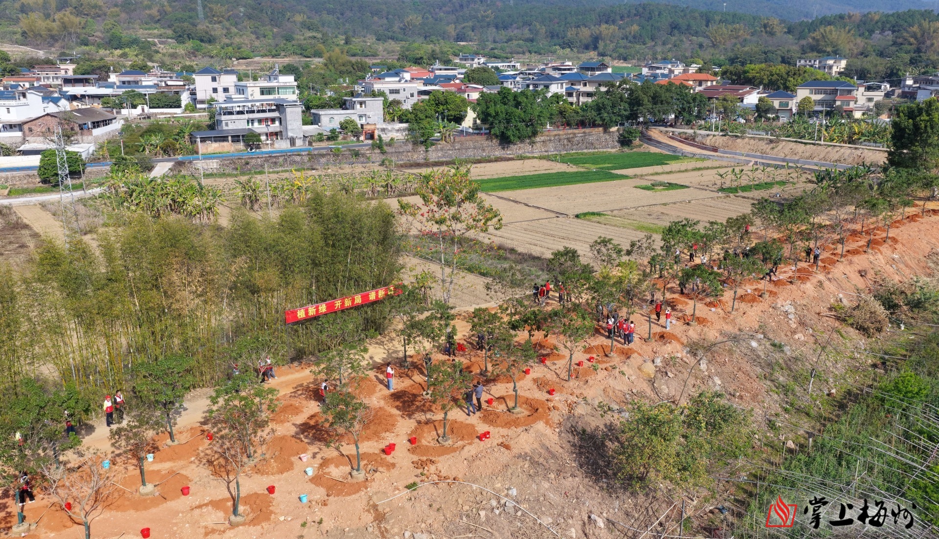 在蕉岭县南磜镇甲华村,市交通运输局、市市场监管局、中国工商银行梅州市分行、蕉岭县交通运输局联合南磜镇,共同开展“爱绿植绿护绿兴绿”主题党日暨结对共建植树活动。干部群众携手挥锹铲土、扶苗浇水,以实际行动为“世界长寿乡”厚植生态底色,共同奏响绿美乡村建设的春日乐章。“接下来,镇上将从组织、资金、技术、管护四方面持续发力,压实各级网格责任,构建多元资金保障体系,强化苗木种植管护全流程技术指导,将新植树木纳入‘党建+网格’管护体系,探索‘一树一人’管护新模式,稳步推进乡村绿化建设走深走实。”南磜镇党建和组织人事办公室主任郭志泳说。