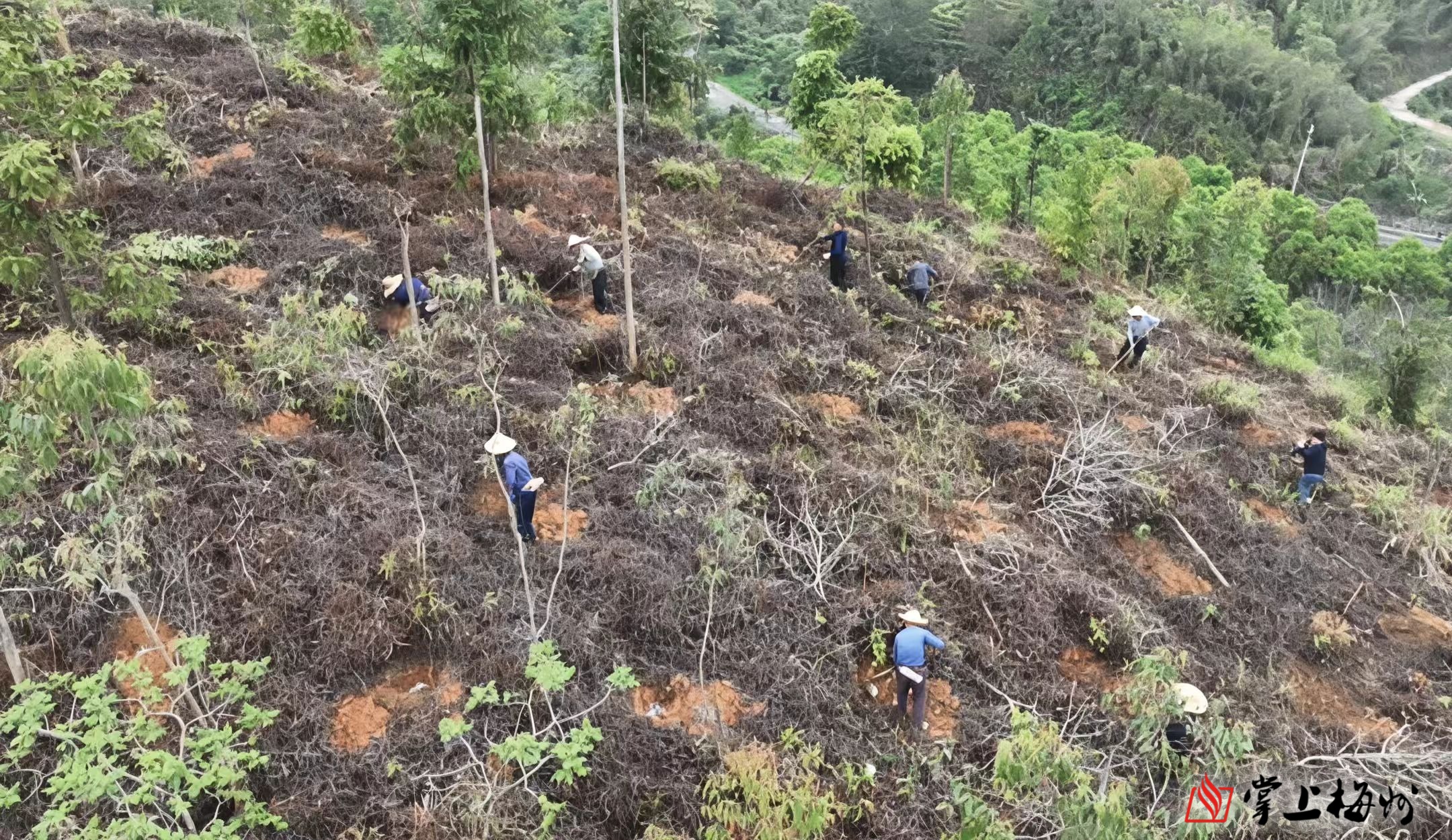 在新铺镇高乾村森林质量精准提升林分优化造林现场,一派繁忙景象。十余名造林工人在林业工作人员的指导下,严格按照规范流程挖坑施肥、扶苗定植、覆土夯实,精心栽种红锥、木荷、火力楠、黑木相思等优质阔叶树种,为春日山林增添盎然生机。“我们每天加班加点,组织30多人上山作业,每人每天植树150棵,严格把控质量,做到保质保量,确保在5月15日前全面完成种植任务。”2026年林分优化第三标段负责人王木果说。