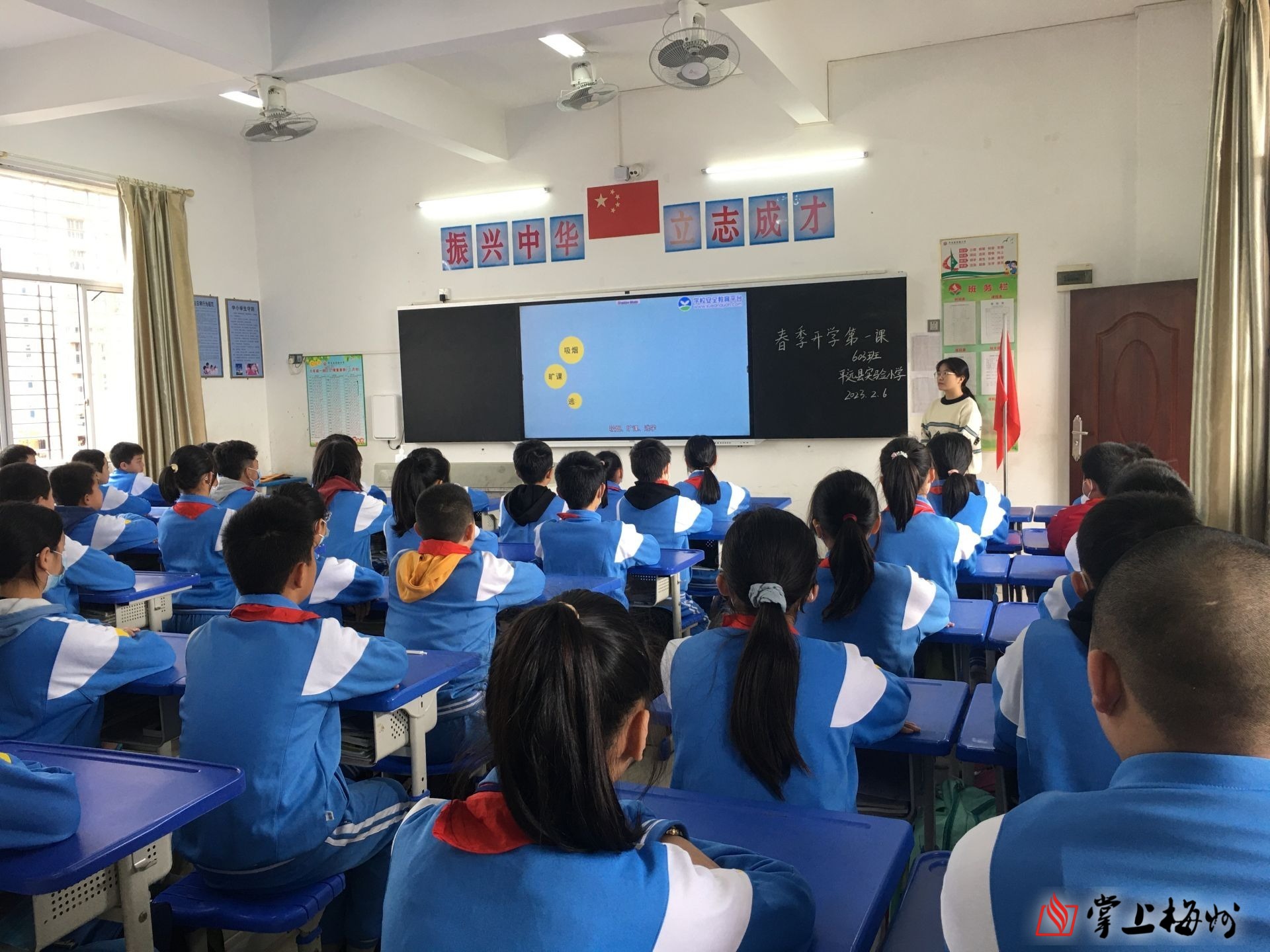 开学首日,平远县实验小学举行了以“安全伴我在校园·快乐成长每一天”为主题的春季安全第一课专题教育活动。(丘美萍 摄)