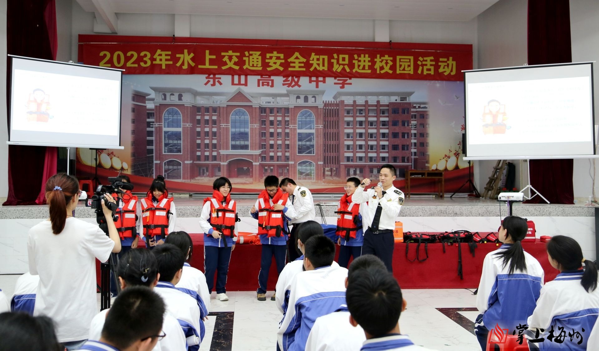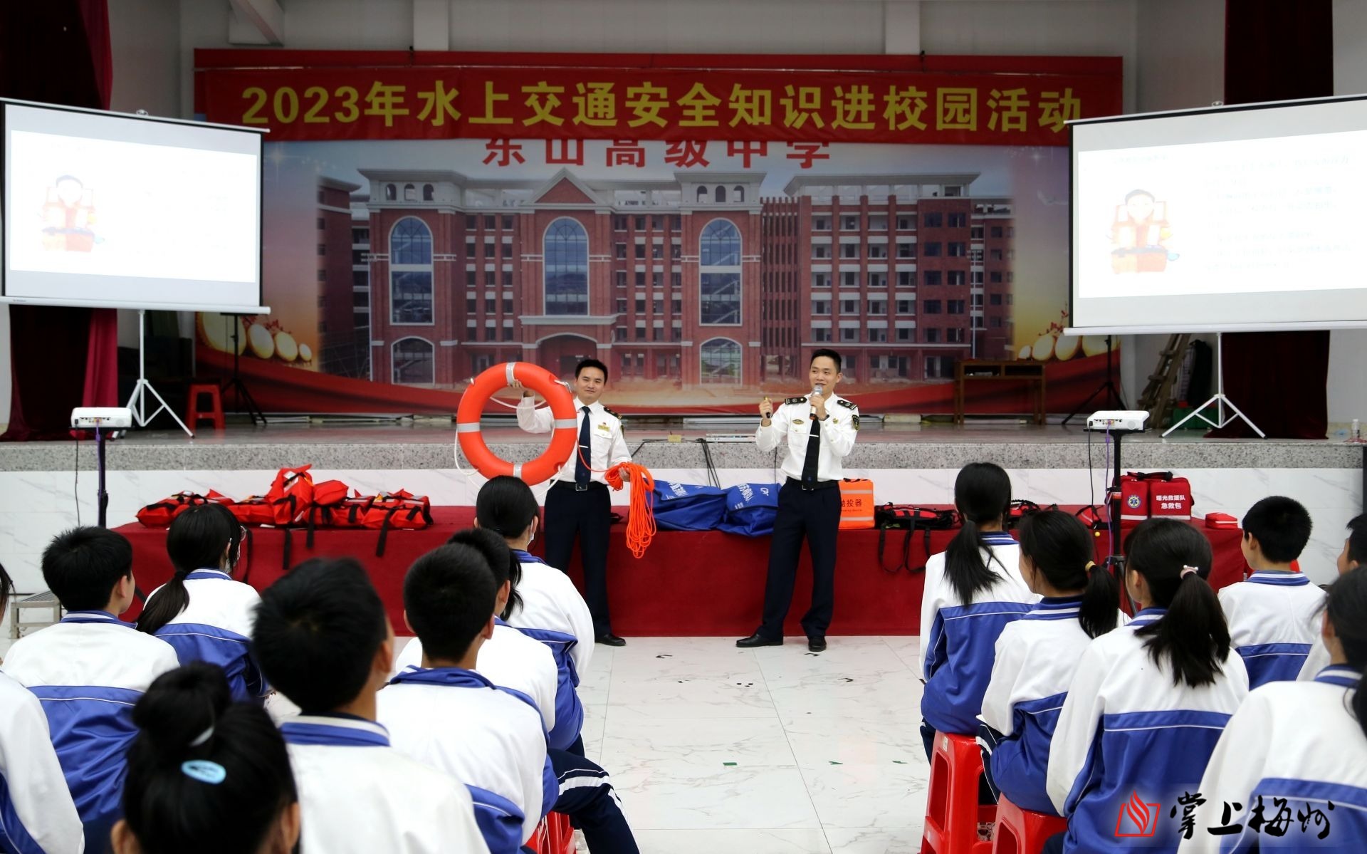掌上梅州讯 “防溺水‘六不’‘两会’是指什么?”“乘坐游船、渡船时应该看清哪些标识?”“水上遇险需要救援可以拨打110或者12395遇险求助电话”……4月27日,梅州海事局以“社会主义核心价值观主题实践教育月”为契机,联合梅州市教育局及梅州曙光救援队走进梅州市东山学校开展“践行社会主义核心价值观,水上安全知识伴我成长”为主题的水上交通安全知识进校园活动,为该校200多名师生送上一堂生动的水上安全知识课程。