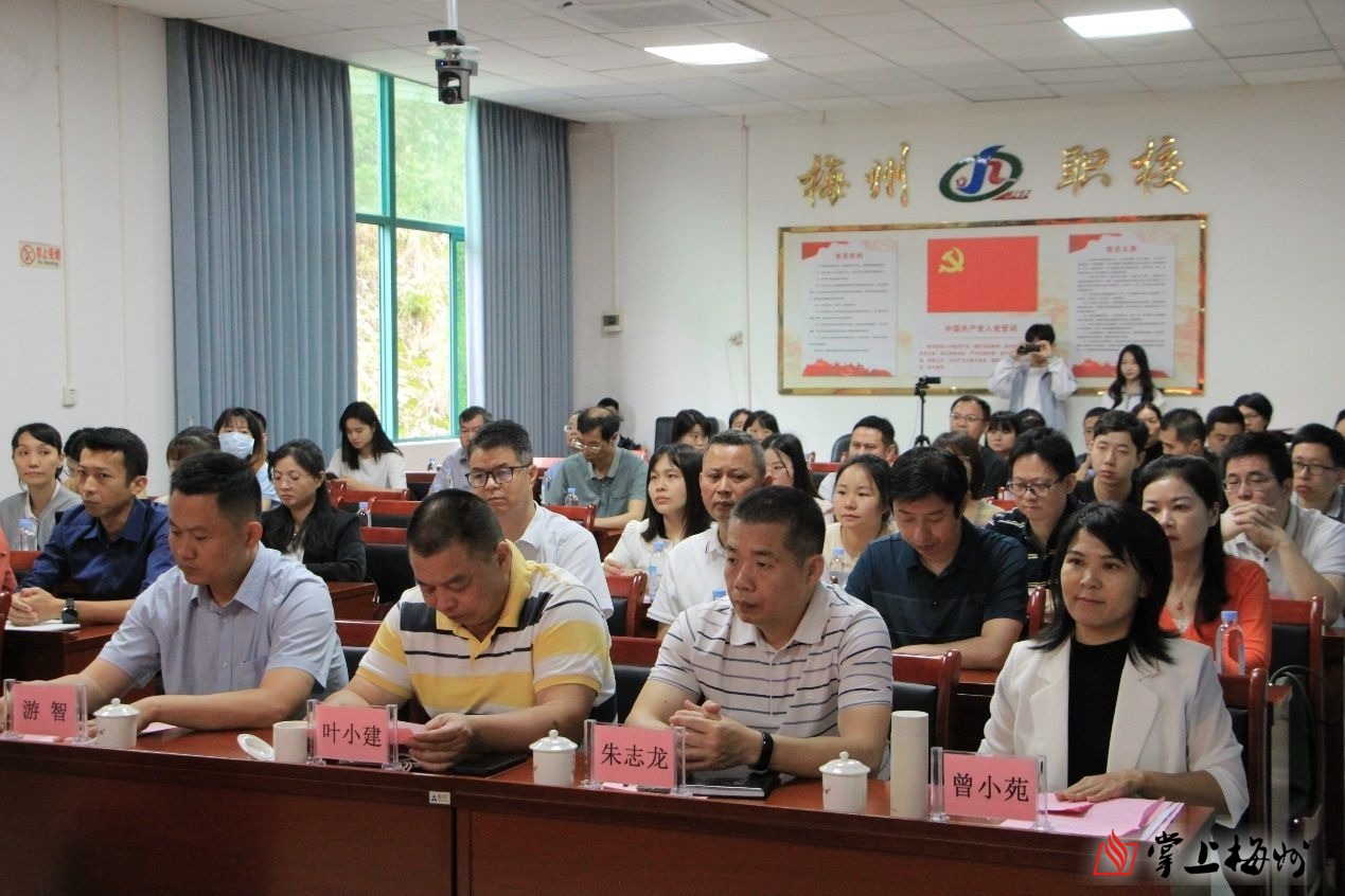 中国职教学会德育工作委员会副主任、广东省中等职业学校德育研究与指导中心主任、广东省中等职业学校德育研究会会长汪永智,广东技术师范大学学报编辑部主任、广东省中等职业学校德育指导委员会委员余翔,梅州市教育局副局长李杏玲,梅州市教育局德育与安全科科长游智,梅州市职业技术学校党委书记、校长郭捷兴出席仪式。仪式由梅州市职业技术学校副校长梁锋同志主持。