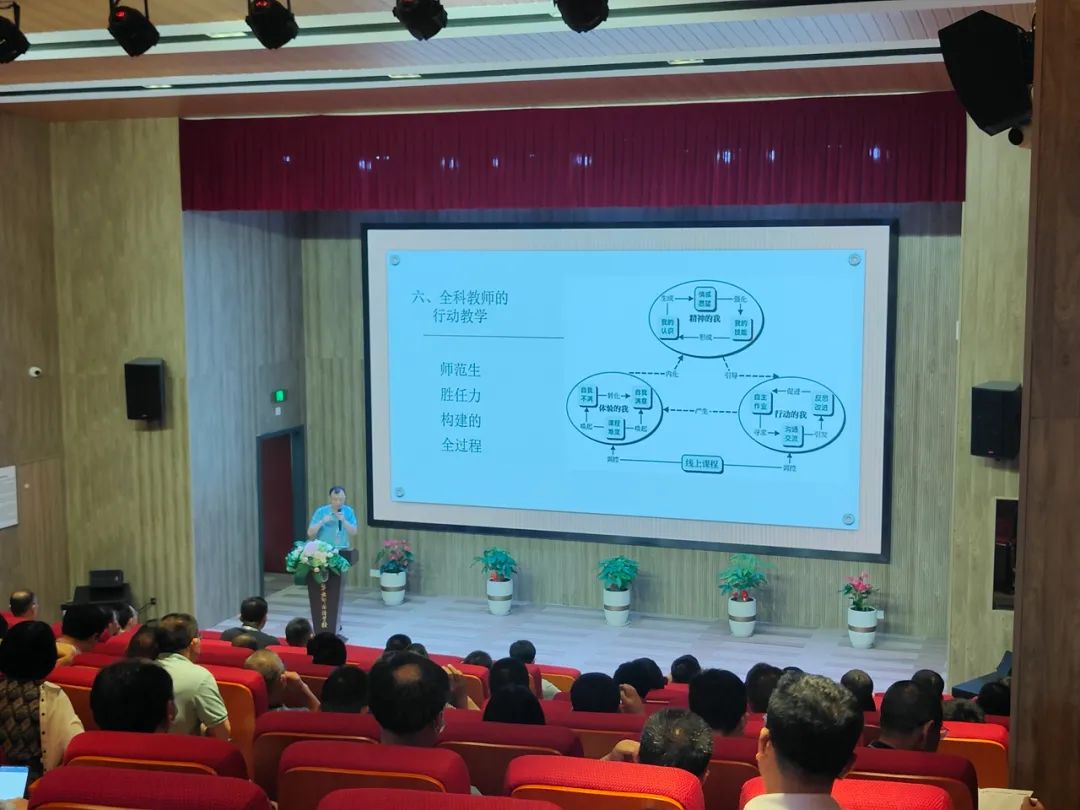 接着,由魏峰教授和杨甲睿教授分别带来《乡村教育高质量发展与中小学校长的使命》和《新发展阶段全科教师的行动教学》主题讲座。魏峰教授曾挂职南京市建邺区教育局副局长,又曾多次担任国外访问学者,丰富的工作经历让他对乡村教育有着系统而独特的洞见。他风趣幽默的发言,一个接一个生动的案例,带领全体参会人员对什么是教育质量、中小学校长工作发力点等问题进行全新的思考。杨甲睿教授则从全科教师的角度入手,帮助校长重新梳理小学教师的工作特点及工作职责,为学校管理提供有力抓手。