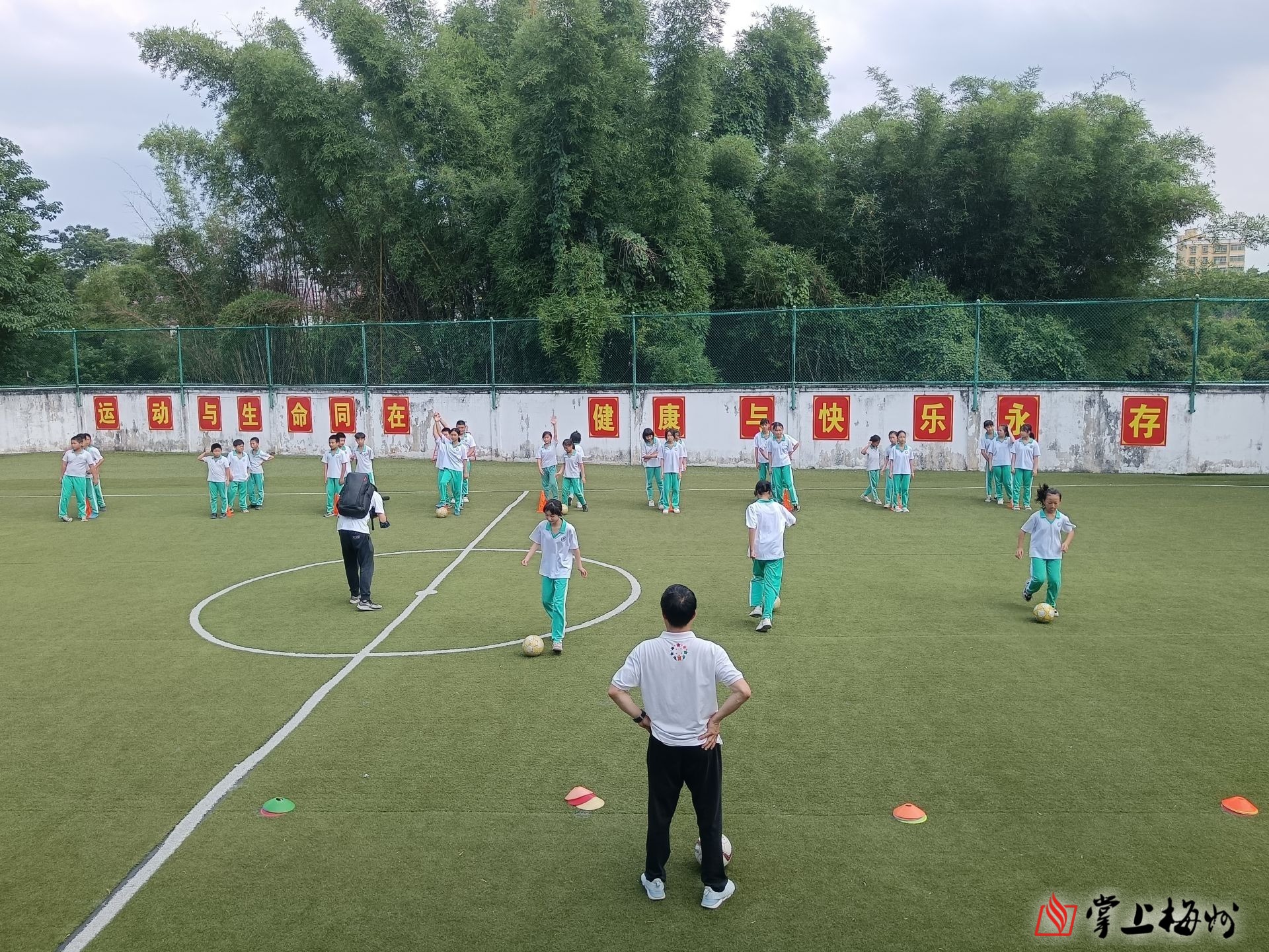 带球绕桩,熟悉球性;互相顶球,练习头功……午后,在教练刘宁彬的带领下,兴宁市兴城灌新小学女子足球队的队员们顶着烈日进行着专业训练,她们心怀梦想,毫不懈怠,挥汗如雨。足球为这些乡村女孩插上了追梦的翅膀,而这都得益于“追风计划”。